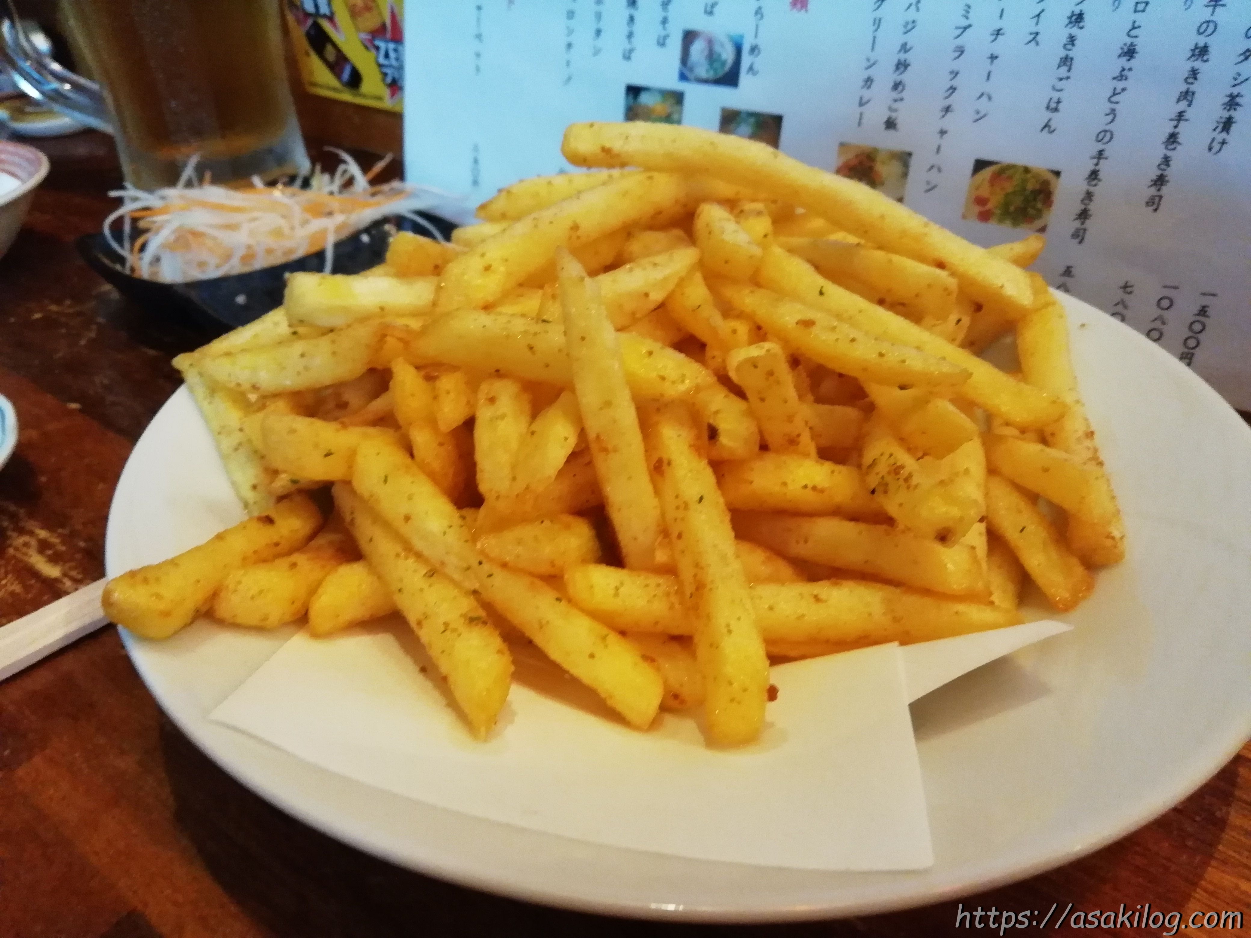 そして娘からのオーダーは「やみつきポテト」。このポテト本当に美味しくて、まさに「やみつき」。娘1人で半分は食べたんじゃなかろうか・・・?!(笑)