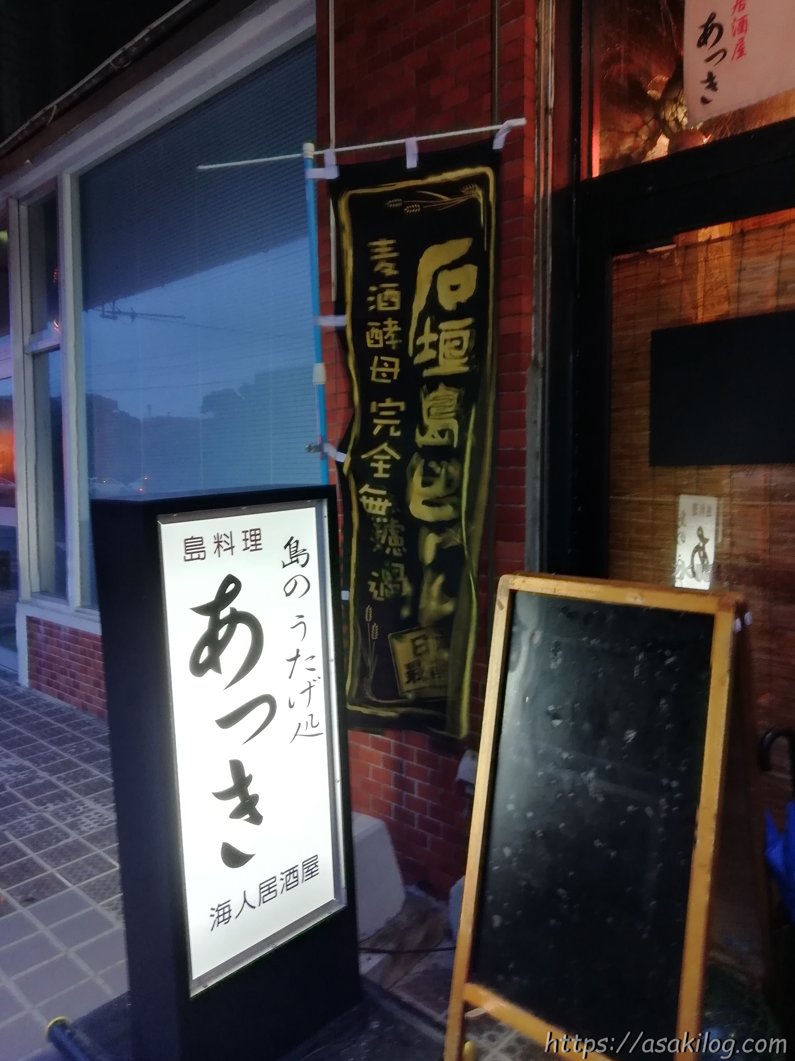 石垣島滞在初日の夜ご飯は、ゆらてぃく市場から歩いて5分くらいの場所にある「海人居酒屋 島のうたげ処 あっき」へ行きました。