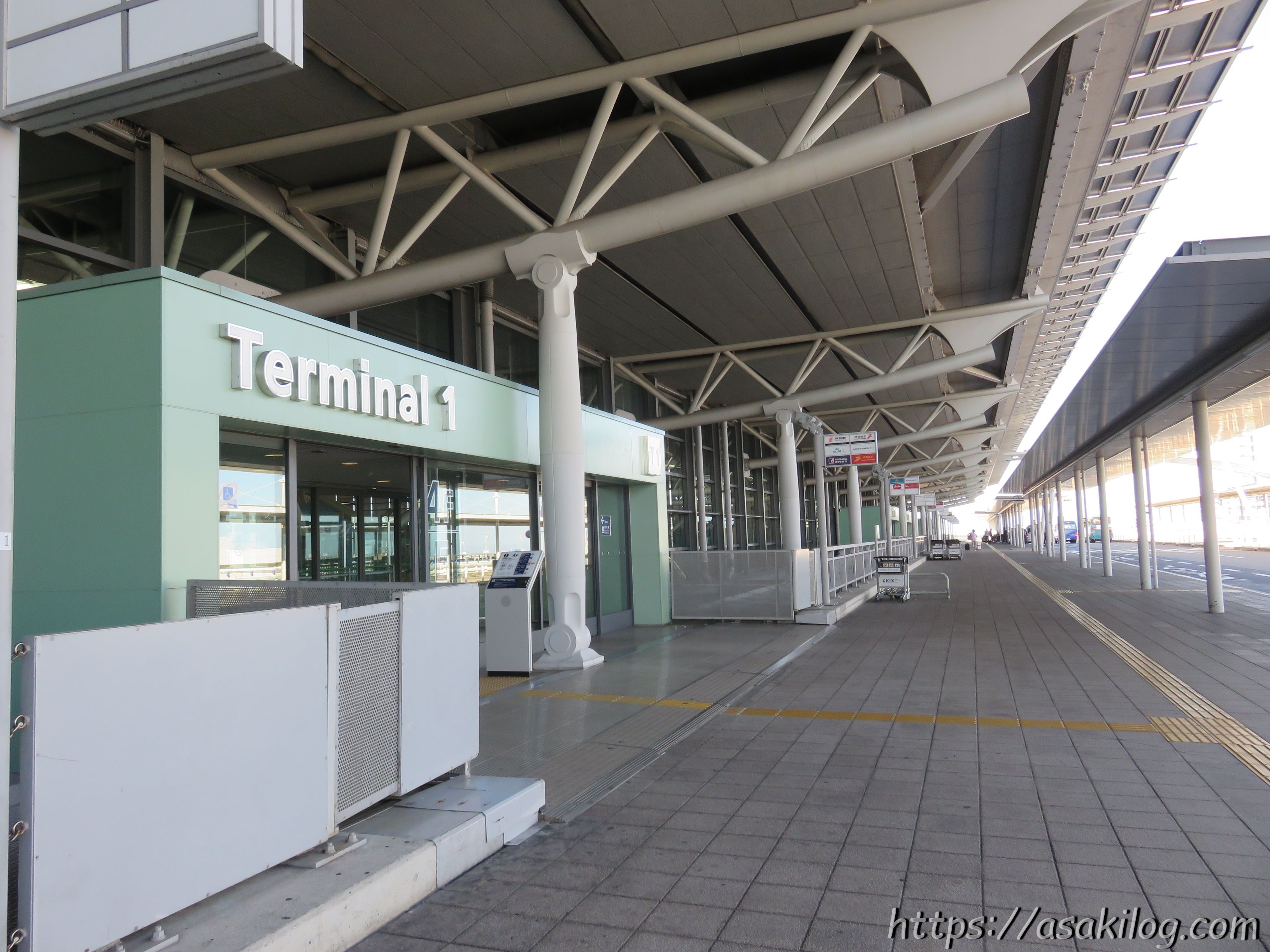 7:15頃~ようやく関西国際空港(第1ターミナル)に到着。4Fの国際線出発フロアーから、2Fの国内線出発・到着フロアへ移動します。ANAカウンターでスーツケース+メッシュバッグ(マリンセット)を預けたり、コンビニで朝ごはんを買ってから、いざ!出発ロビーへ。