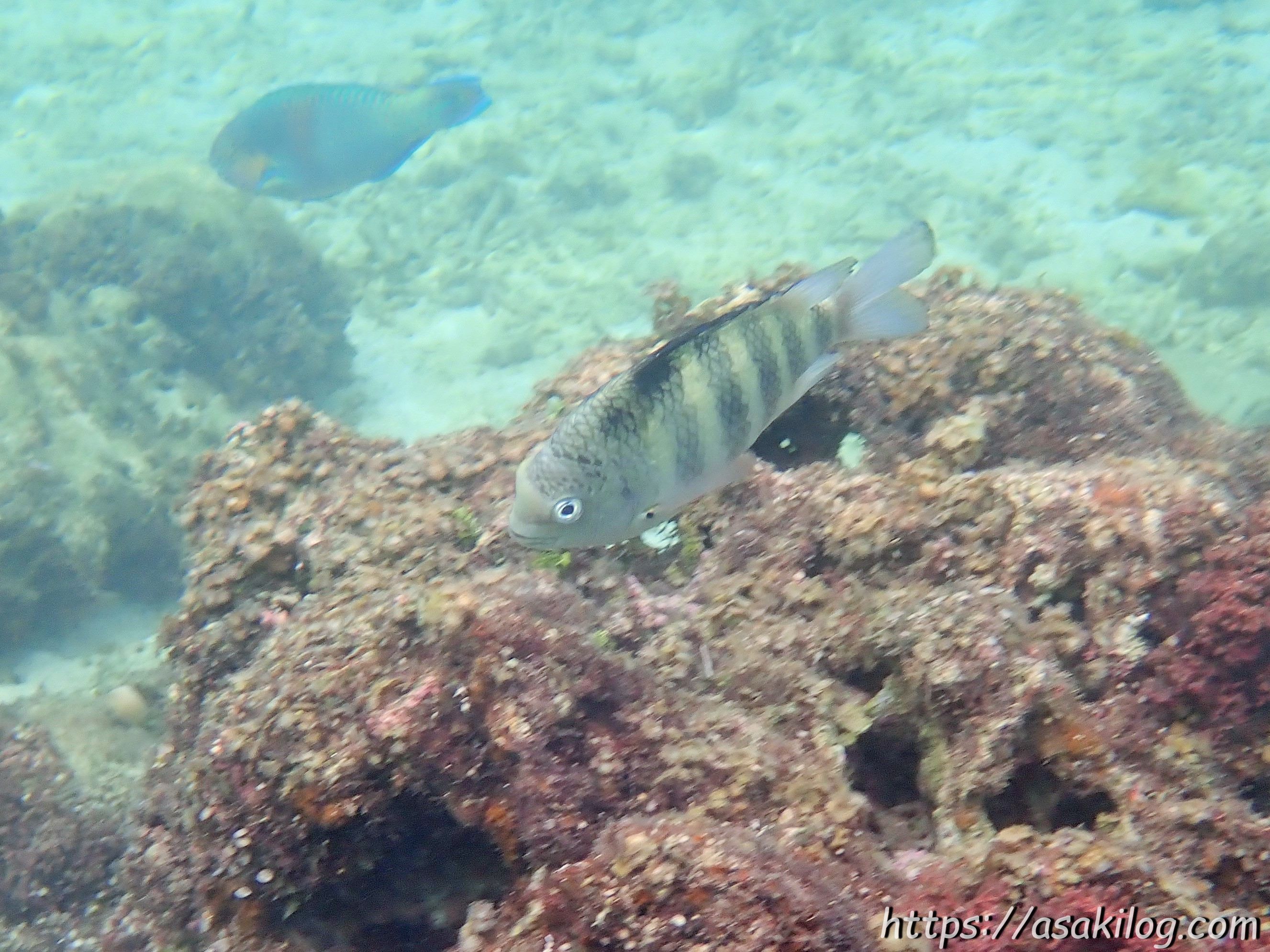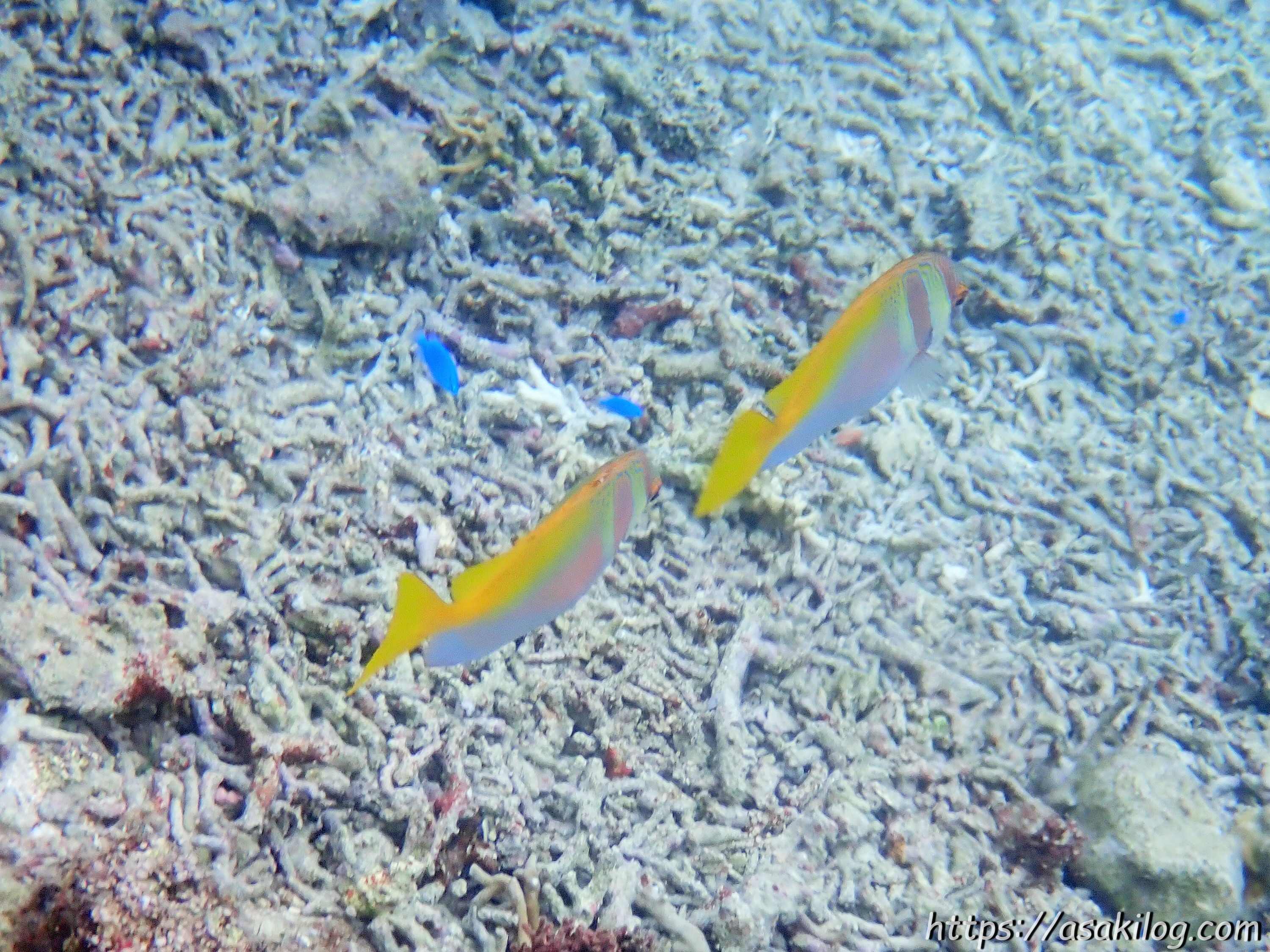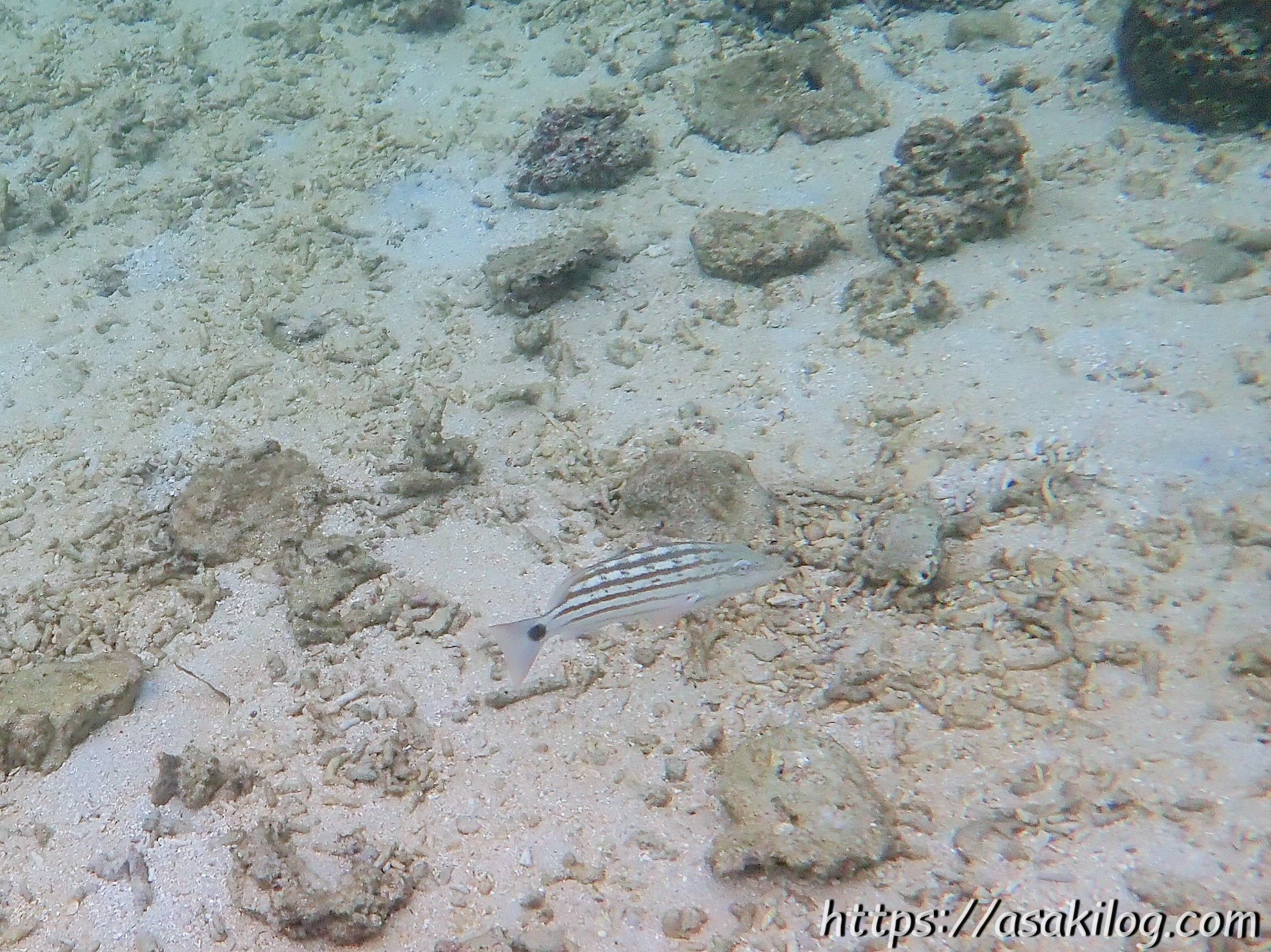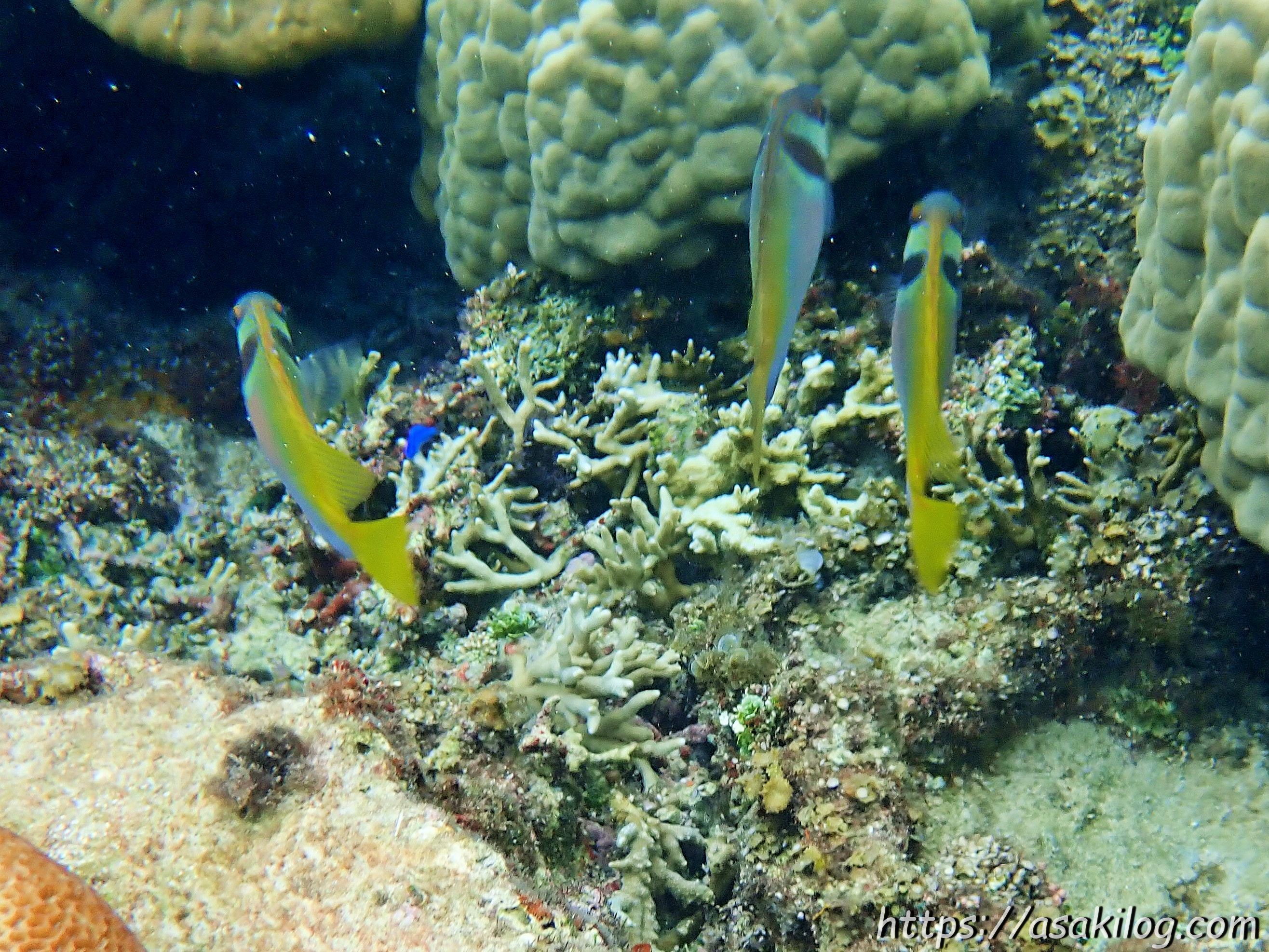 米原ビーチでも、そのほかにもいろいろなお魚たちを見かけました。(元ダイバーなのに、魚の名前がなかなか覚えられない私。綺麗なお魚が泳いでいる景色を眺めるだけで、いつも満足しちゃうのです。)