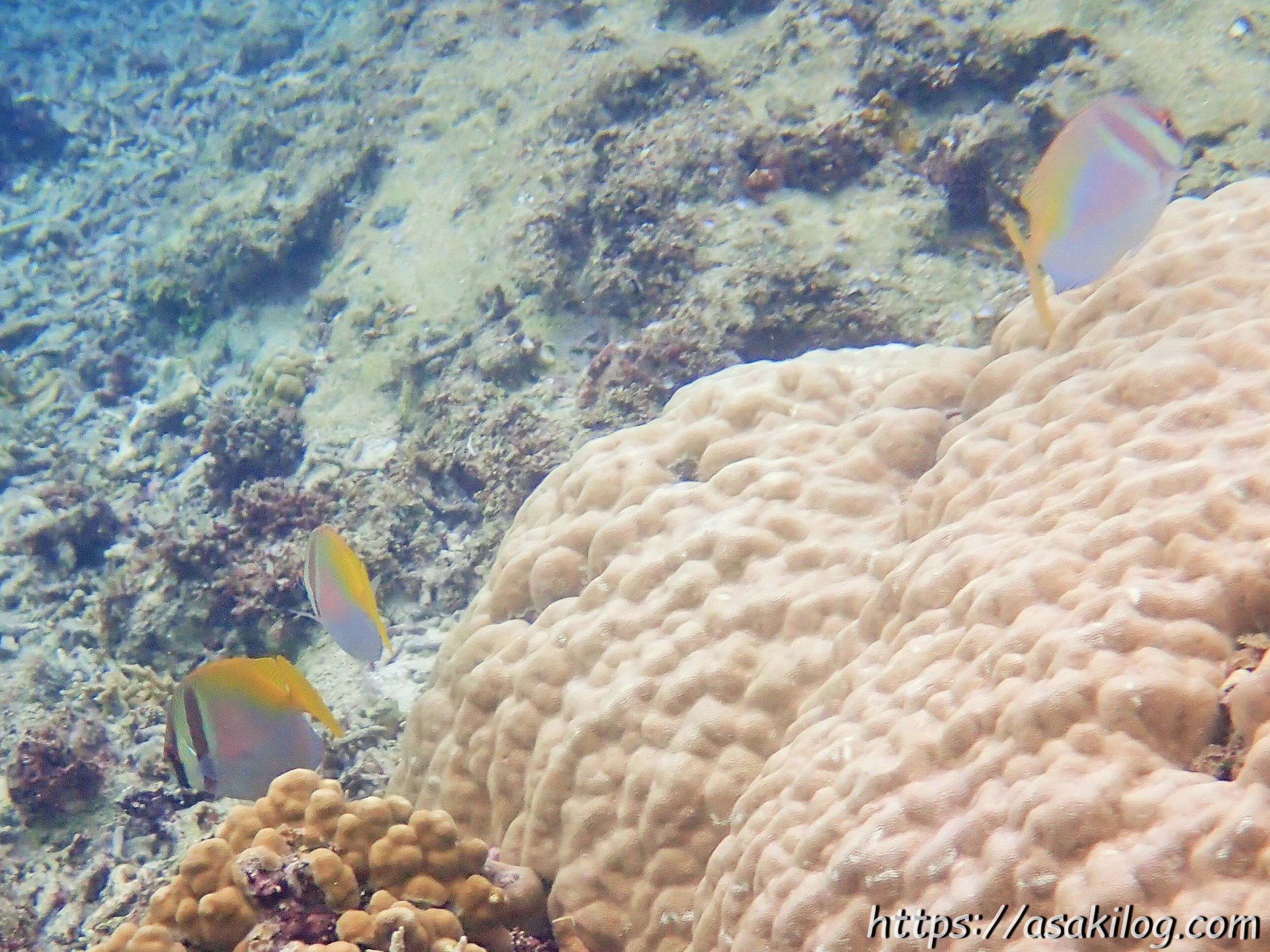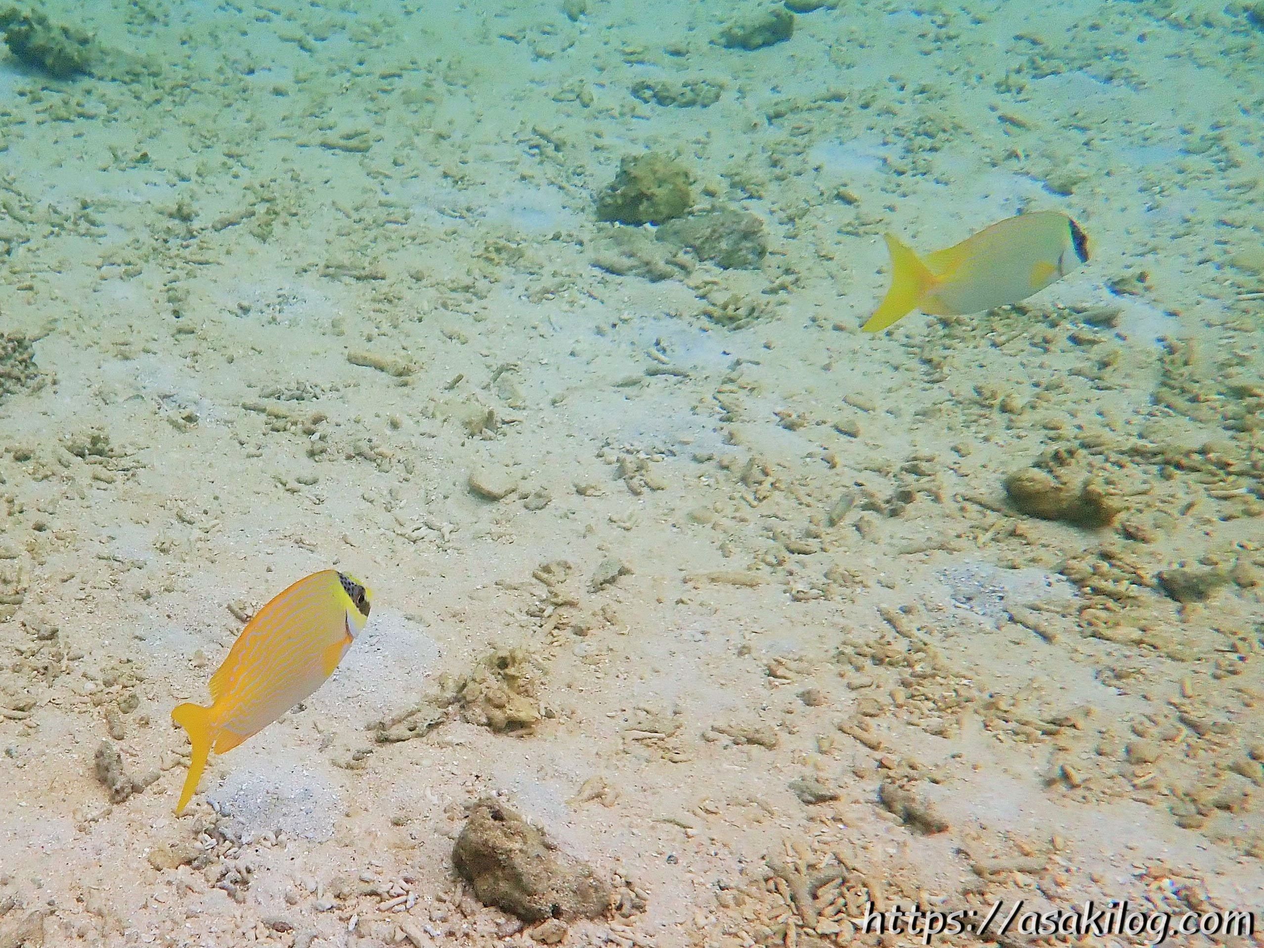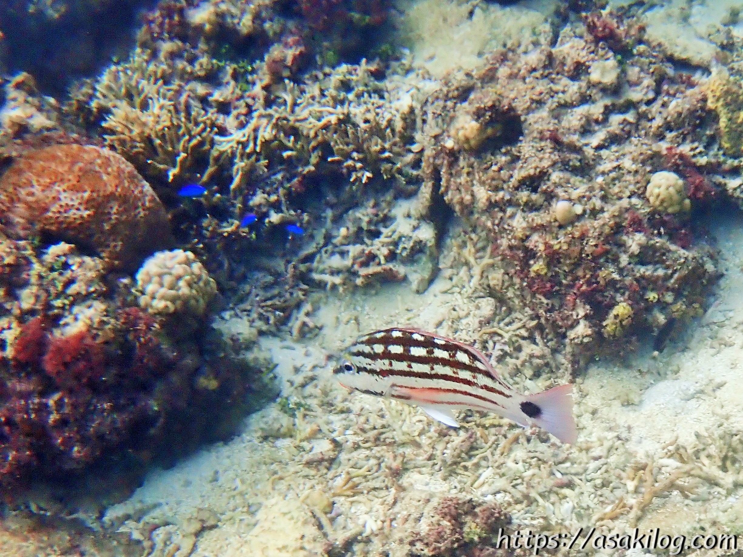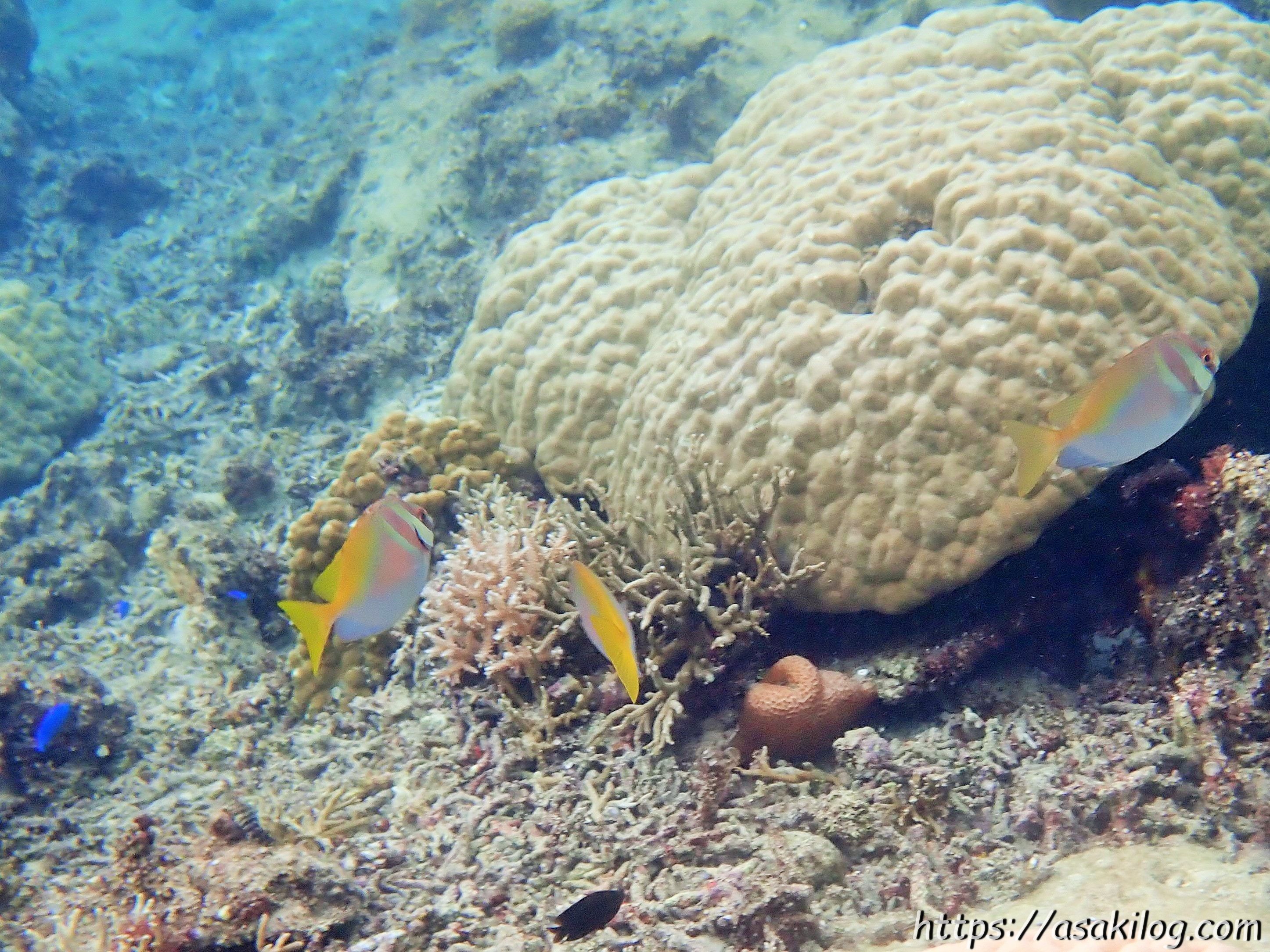 米原ビーチでも、そのほかにもいろいろなお魚たちを見かけました。(元ダイバーなのに、魚の名前がなかなか覚えられない私。綺麗なお魚が泳いでいる景色を眺めるだけで、いつも満足しちゃうのです。)