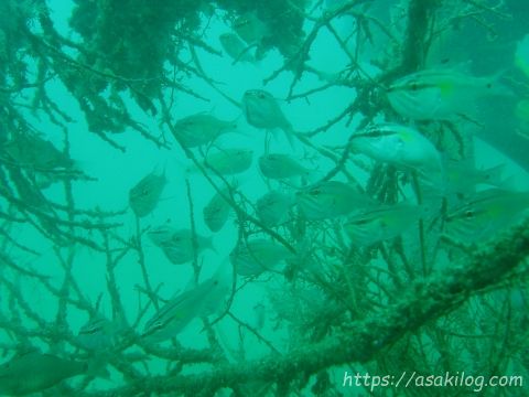 それにしても・・・伊豆の海で撮る写真って、何故か緑になってしまいます。フラッシュで撮影しても、私のヘボカメラでは、限界が。その程度の水中カメラでも、ログ付けには、十分間に合うんですけどね。