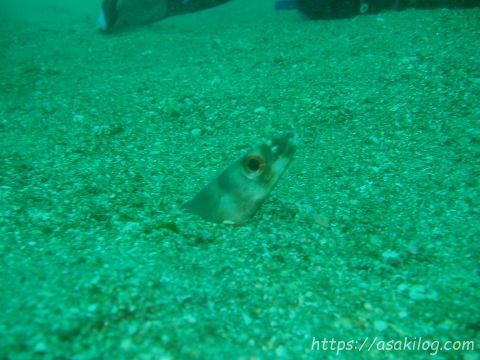 ハナアナゴが、顔をちょこっと出してます。近付くとひっこむから、写真撮るのに一苦労。