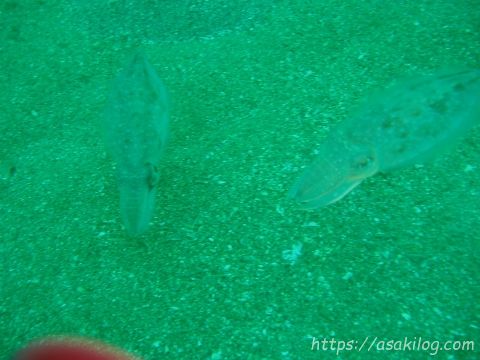 こちらはアオリイカ。求愛中?なのか、仲良く並んで泳いでいました。