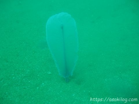 この生物は、暗い砂地に生息し、開いた羽根の部分でプランクトンなどを捕まえて食べて生活しているそうです。不思議な容姿に、じーっと見入ってしまいました。ふわりふわり。