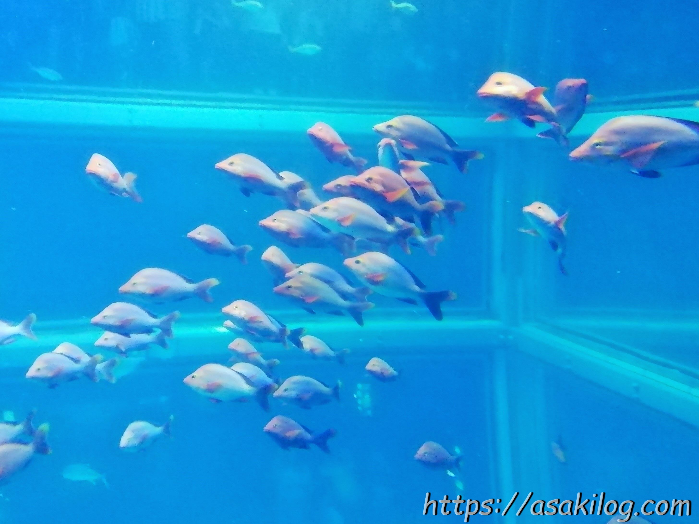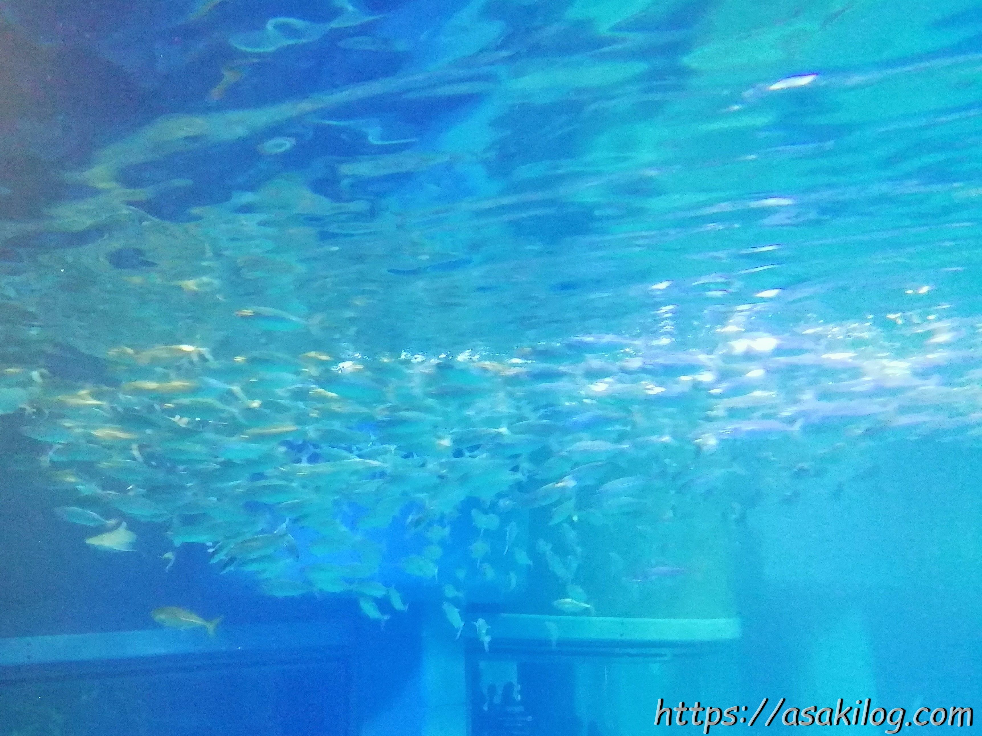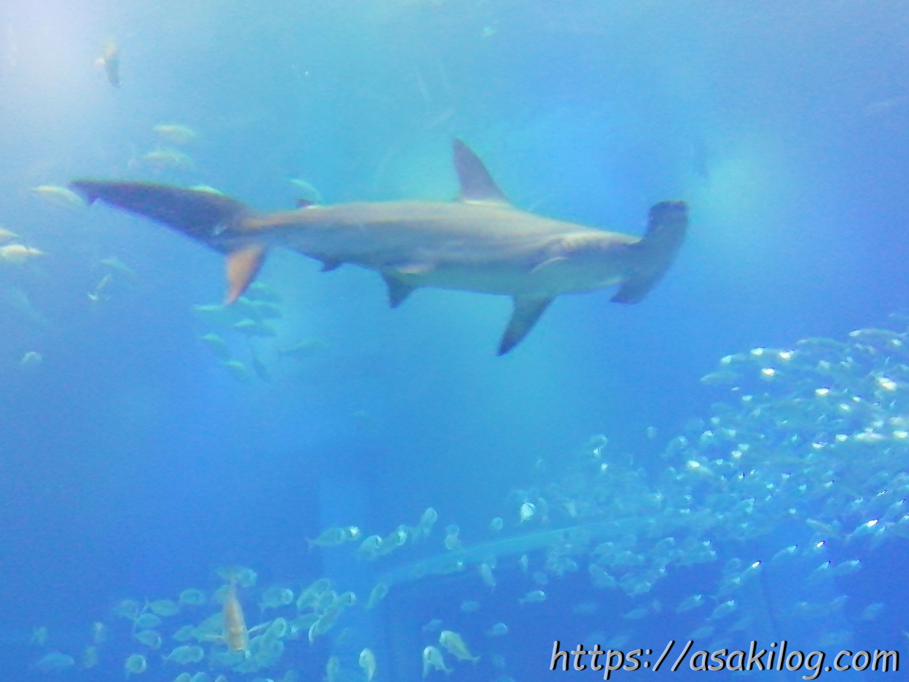 大き過ぎて写真では撮れていませんが、水槽の中には2匹のジンベエザメがダイナミックに泳いでいました。