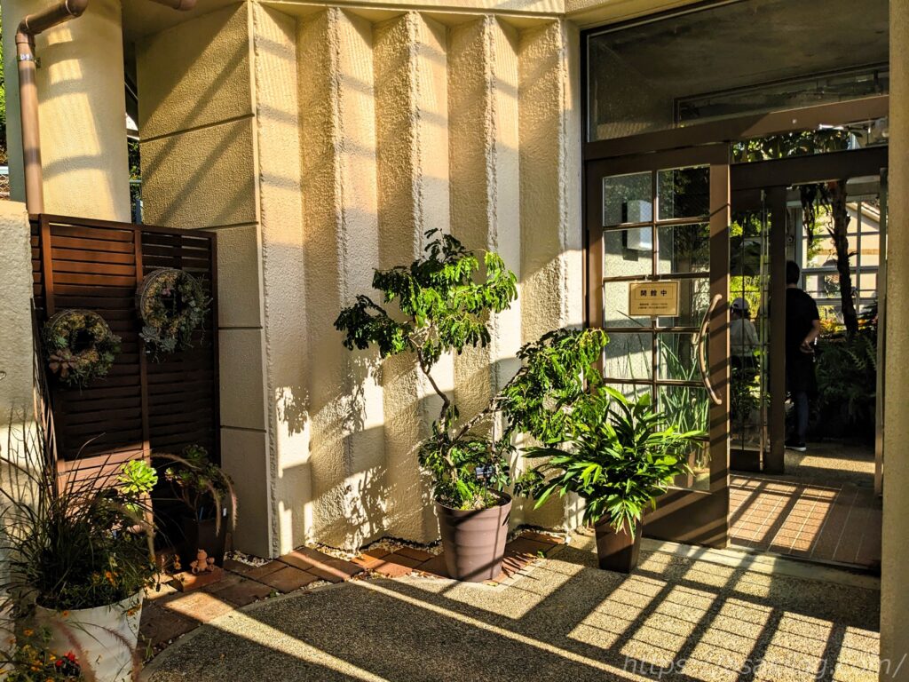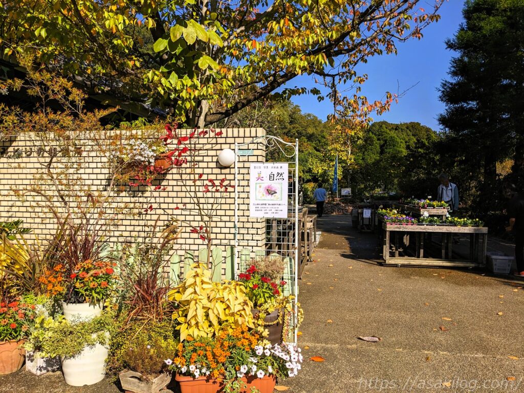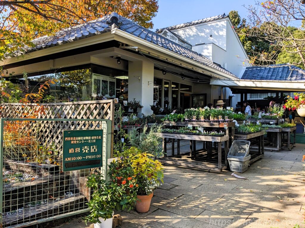 入口正面を行った先の建物は直営の売店で、観葉植物や苗などを販売しています。園内散策前に購入してしまうと重たいので、帰りに立ち寄ることにしました。