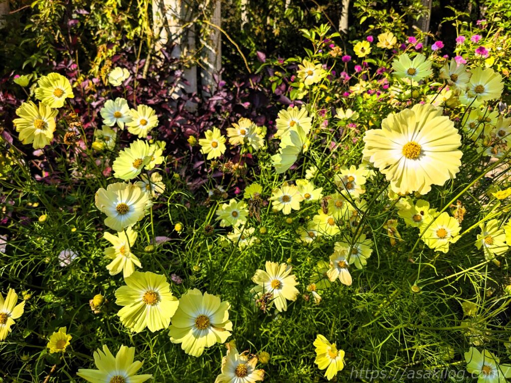 園内ではいろいろな種類のお花が咲いてますが、珍しい黄色のコスモスに癒されて、パンパスグラスに秋を感じました。