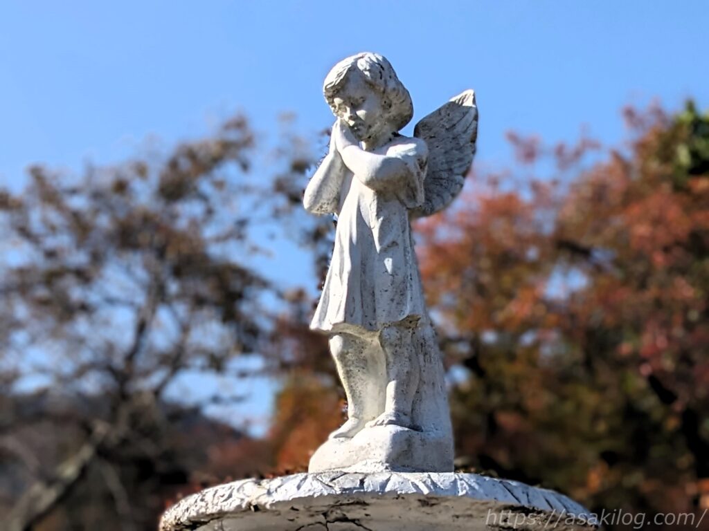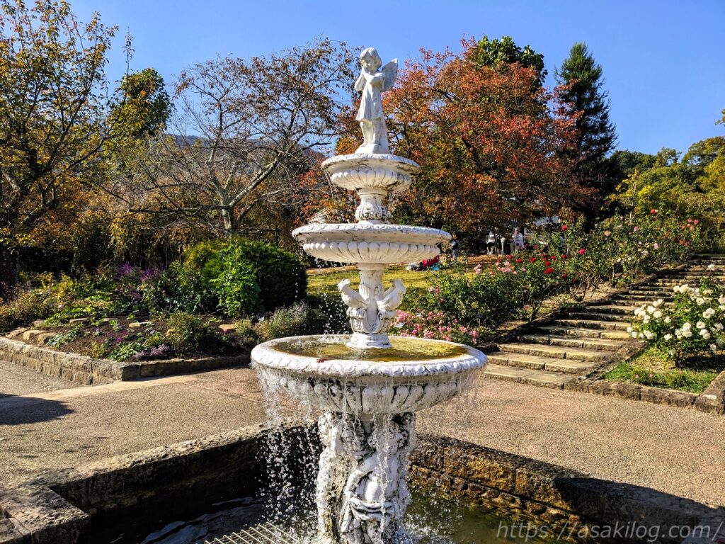 こちらは園内中央の噴水スポット。小さな天使のオブジェが可愛い。