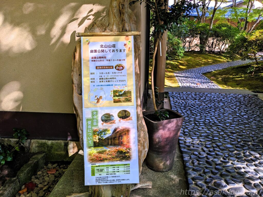 市内在住の故木村吉太郎氏の寄贈を受け、市制60周年を記念して建設された建物なんだそう。北山山荘では、庭園公開と(期間限定で)抹茶の有料サービスも行っています。