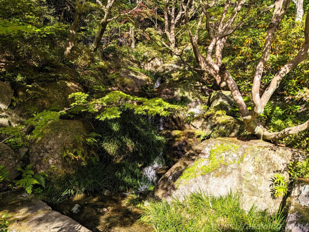 日本庭園には、静かに流れる四段の滝や、水琴窟(すいきんくつ)もあります。残念ながら水琴窟の音は聞こえませんでした。