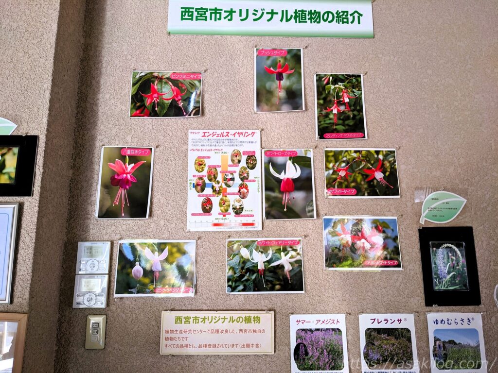 入口手前で、とっても綺麗なフクシアの花を発見。センター内の展示資料によると、ここで品質改良した西宮市独自の「エンジェルス・イヤリング」という品種のようです。