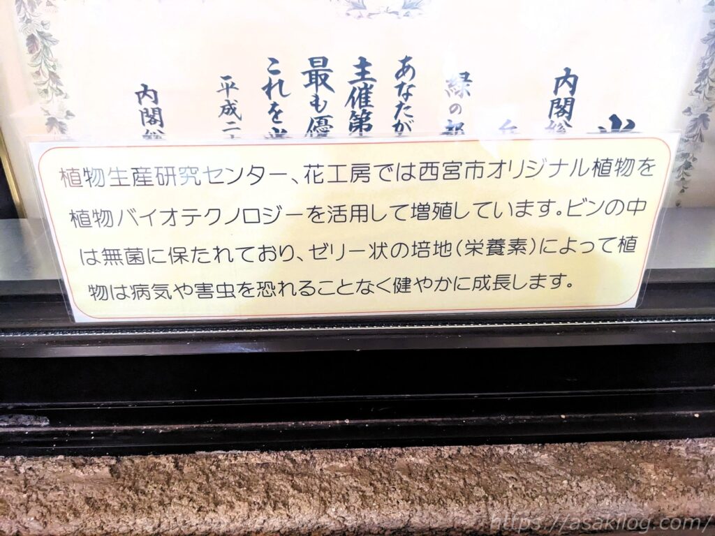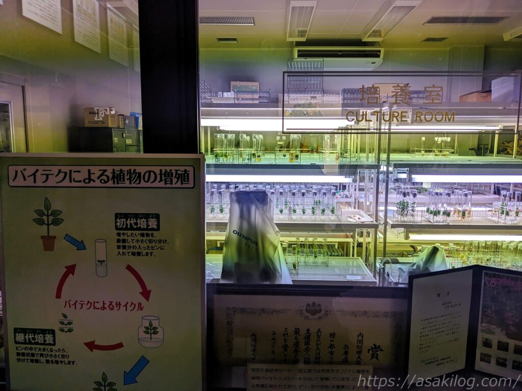 特色ある都市緑化を推進するため、最先端科学技術のバイオテクノロジーを活かし、植物の増殖・品種改良などを行い、市民の暮らしにつないでいくための植物の研究施設なんだそう。