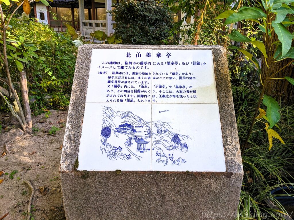 「北山墨華亭(きたやまぼっかてい)」は、姉妹都市である中国紹興市の名園・蘭亭内にある「墨華亭」及び「回廊」をイメージした建物で、平成4年に日中友好のシンボルとして完成しました。