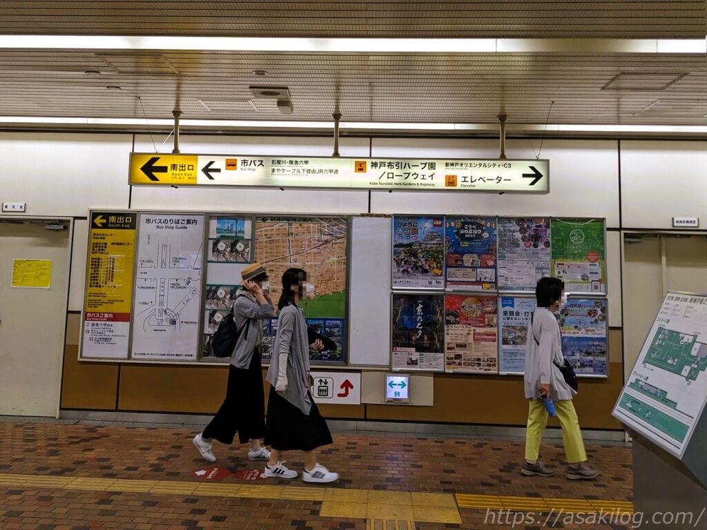 三宮駅から「神戸市営地下鉄西神・山手線」に乗って新神戸駅で下車。駅の改札口の案内「神戸布引ハーブ園/ロープウェイ」に沿って向かいます。