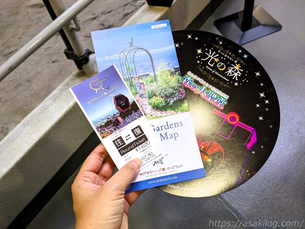 料金には、往復のロープウェイ乗車料とハーブ園入園料が含まれています。またロープウェイは、風の丘中間駅⇔ハーブ園山頂駅を何度でも往復できるので、チケットを捨てないようにしましょう。