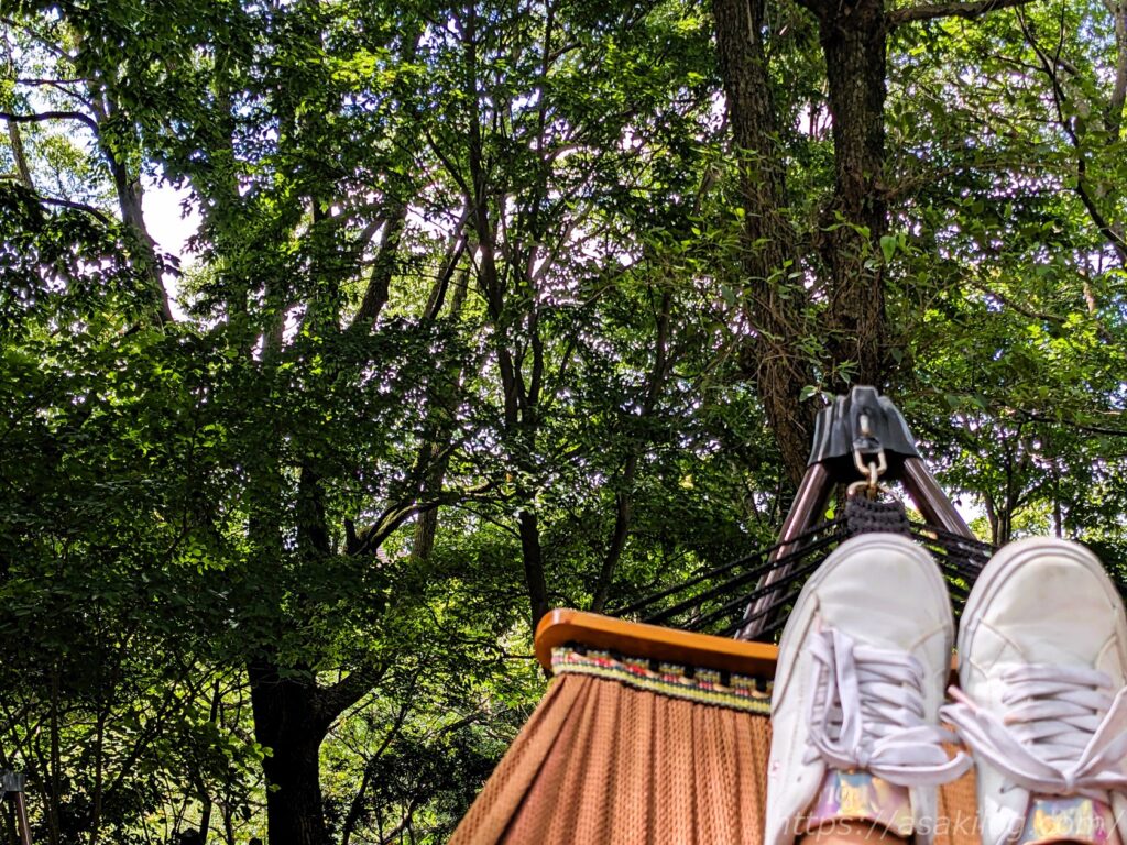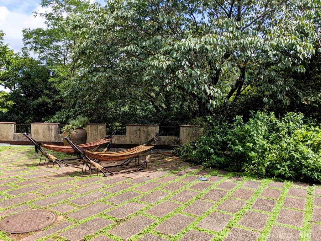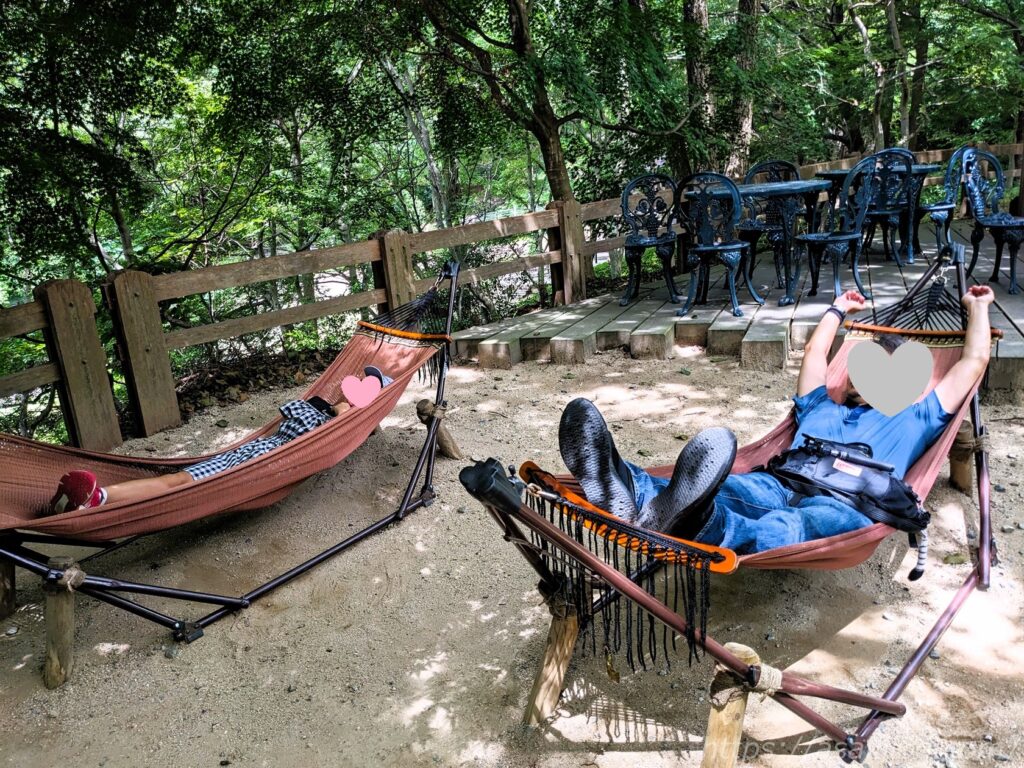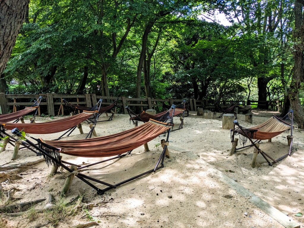 森林浴をしながらお散歩できる「林の小径」入口のコーナーには、素敵なハンモックがたくさんありました。