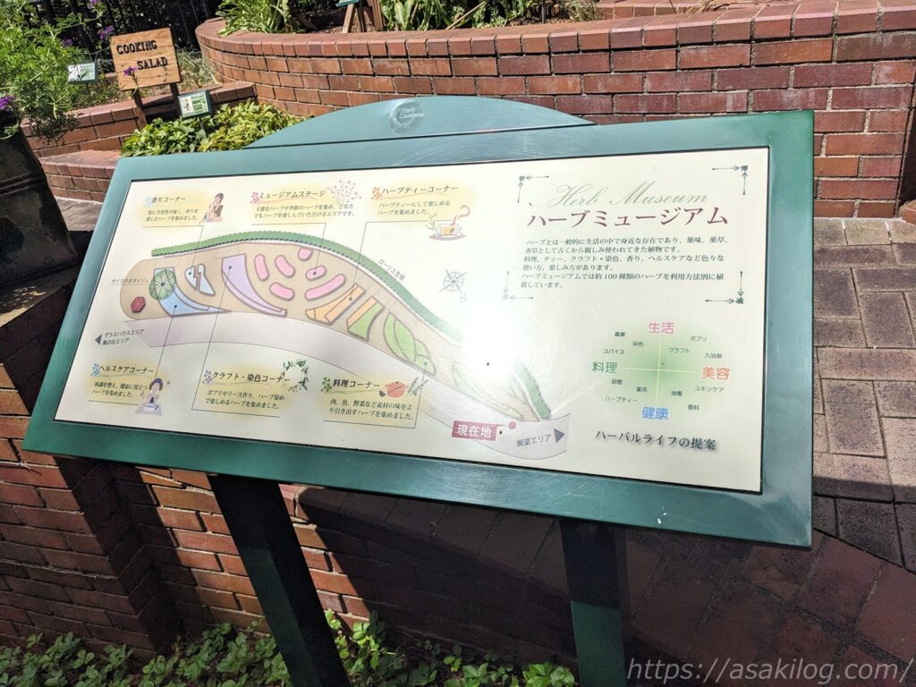 「ハーブミュージアム」では、約100種類のハーブを展示しています。生活に身近な存在となっているハーブですが、ここでは利用方法別に植えられているそう。(上のマップ写真参照)