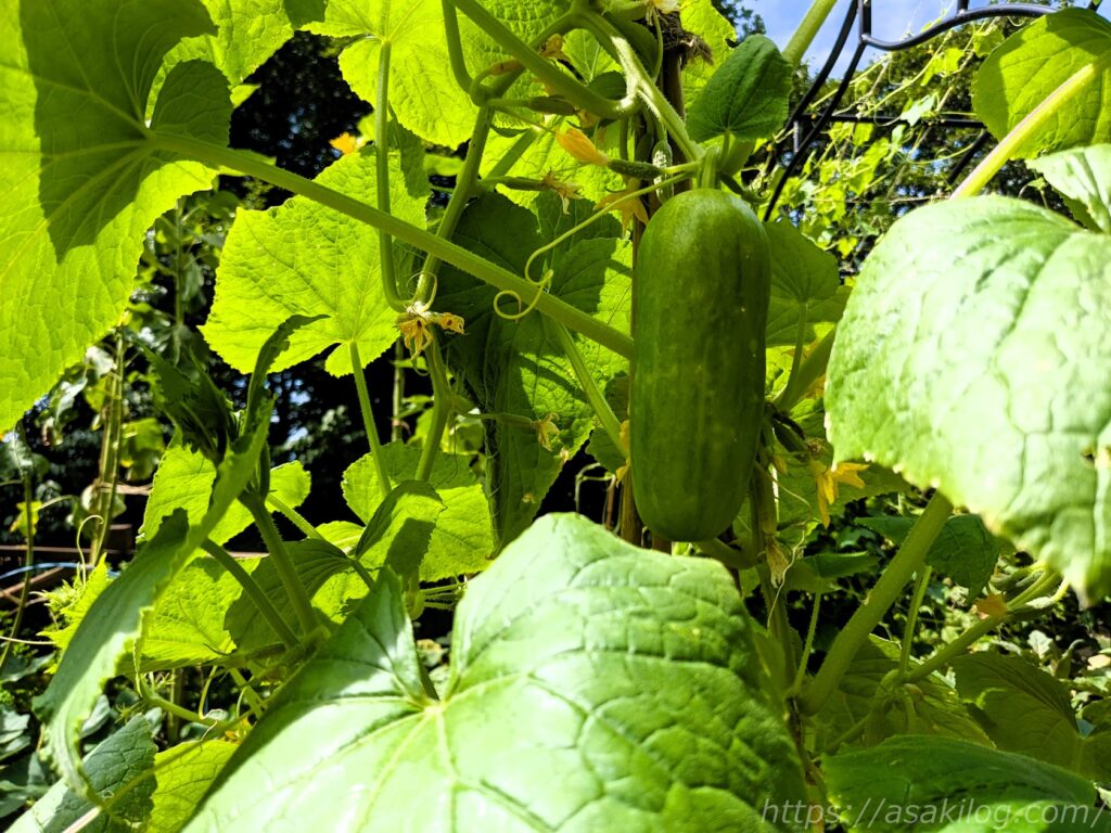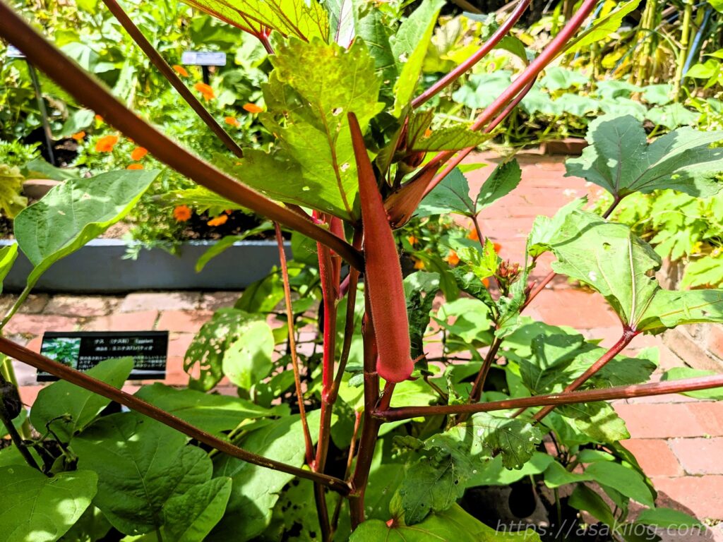 私が訪れた日は、夏野菜「キュウリ(ラリーノホワイト)」「赤おくら(F1島の恋)」「プチトマト」などが植えてありました。私が自宅で育てている野菜もあり興味津々。