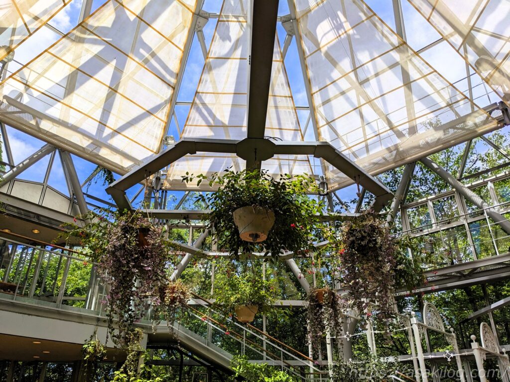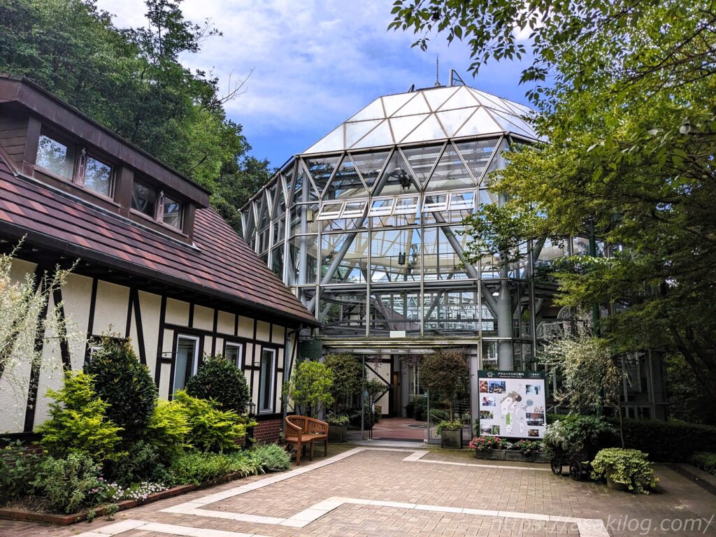 こちらがグラスハウス(温室)の外観、ガラスの形状が美しい建物になっています。