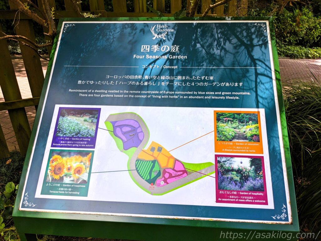 「四季の庭」では「ヨーロッパの田舎町、青い空と緑の山に囲まれ、たたずむ家」をコンセプトに、豊かでゆったりとしたハーブのある暮らしをテーマとした4つのガーデンを展開しています。