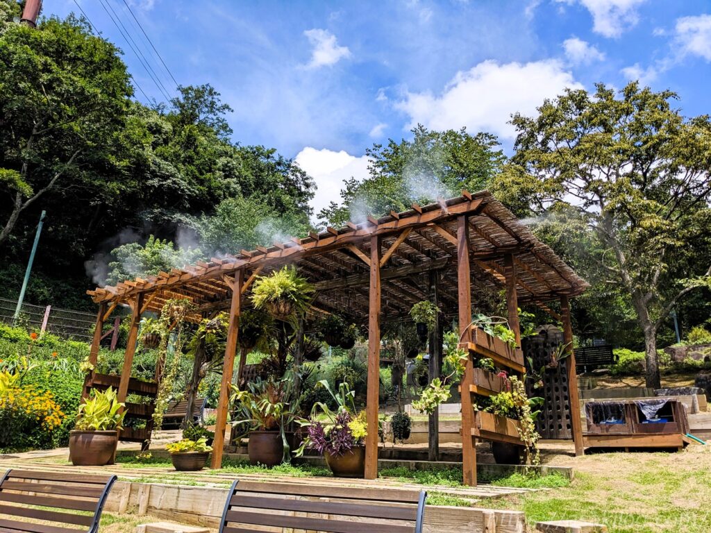 また緑あふれるバーゴラが、涼やかなミストに包まれる夏限定のスポット「ミストの森」も設置してありました。