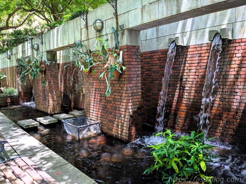 「滝のパティオ」は、布引の滝をイメージした水辺のゾーン。暑い夏の日に訪れたため、とても涼やかに感じられるスポットでした。