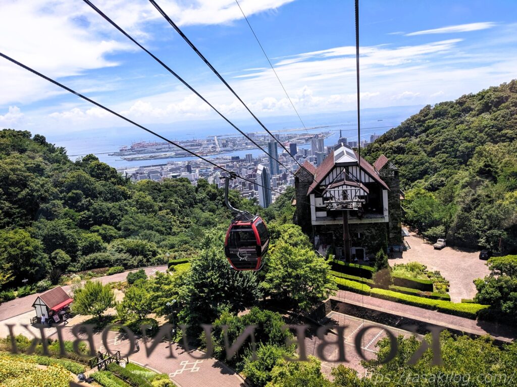 こちらのロープウェイに乗って、ハーブ園山麓駅からハーブ園山頂駅(=神戸布引ハーブ園)へ向かいます。