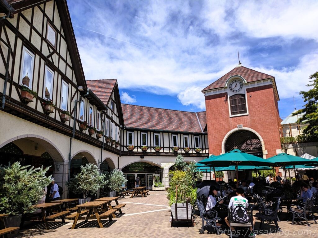 ウェルカムガーデンの奥には、展望プラザの広場があります。左側のレストハウスはドイツの古城「ヴァルトブルク城」をモチーフにしたものなんだそう。