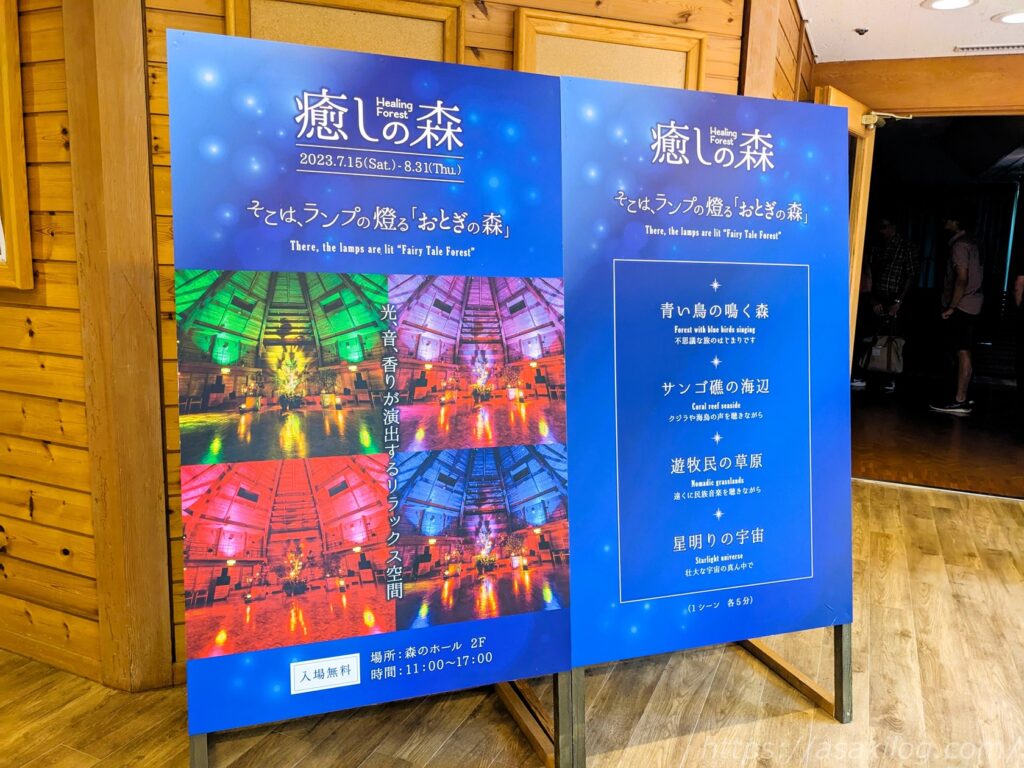 森のホール2Fは、通常多目的ホールとなっていますが、私が訪れた時期は「癒しの森 -そこは、ランプの燈る「おとぎの森」-」を展示していました。(無料)