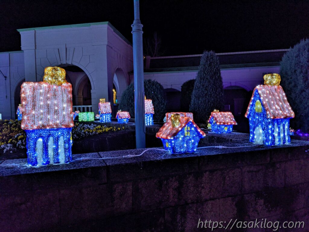 入場口~ワンダートンネルを通ってから、ワンダーピンクキャッスルへ向かうルートなので、人が少ないタイミングで写真を撮るのが大変でした。周りにあったお家のイルミネーションも素朴で可愛い。