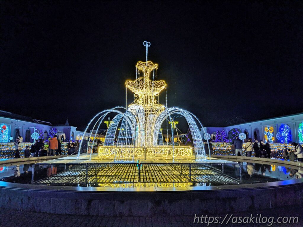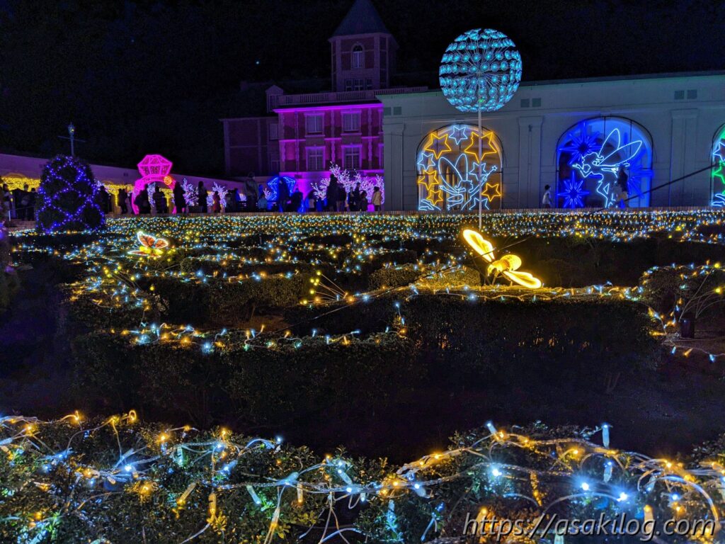 美しい噴水のイルミネーションに、チョウチョのイルミネーションも。