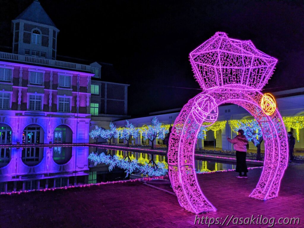 こちらは「マジカルチェリーブロッサムエリア」。大きな指輪のイルミネーションが迫力あり!
