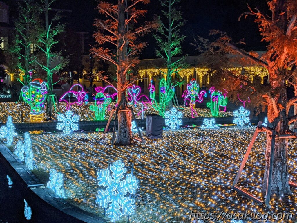 こちらの「マジカルアイランド」は、美しい木や雪の結晶のイルミネーションに加え、なぜかユニークなサボテン達のイルミネーションもありました。