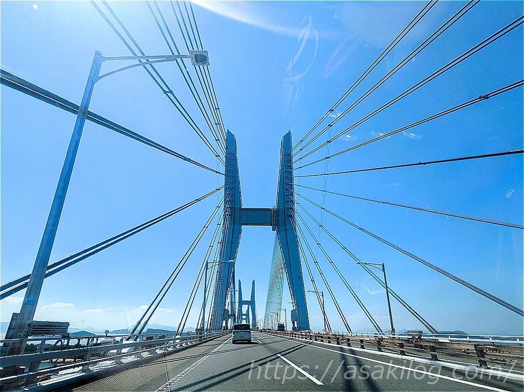 本州~四国を結ぶ橋は3つのルート(瀬戸大橋・しまなみ海道・明石海峡大橋)がありますが、この旅行前に明石海峡大橋経由で淡路島へ行っていたため、今回の高知愛媛旅では行きに「瀬戸大橋」、帰りに「しまなみ海道」を利用することにしました。