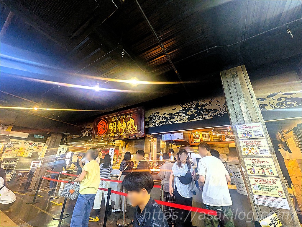 高知名物といえばカツオのたたき!というわけで、まずは「藁焼き鰹たたき名神丸」へ。水産会社直営で、伝統漁法・一本釣りで釣ったカツオを店頭で藁焼きにする人気店です。