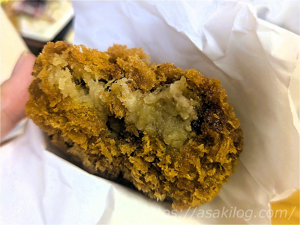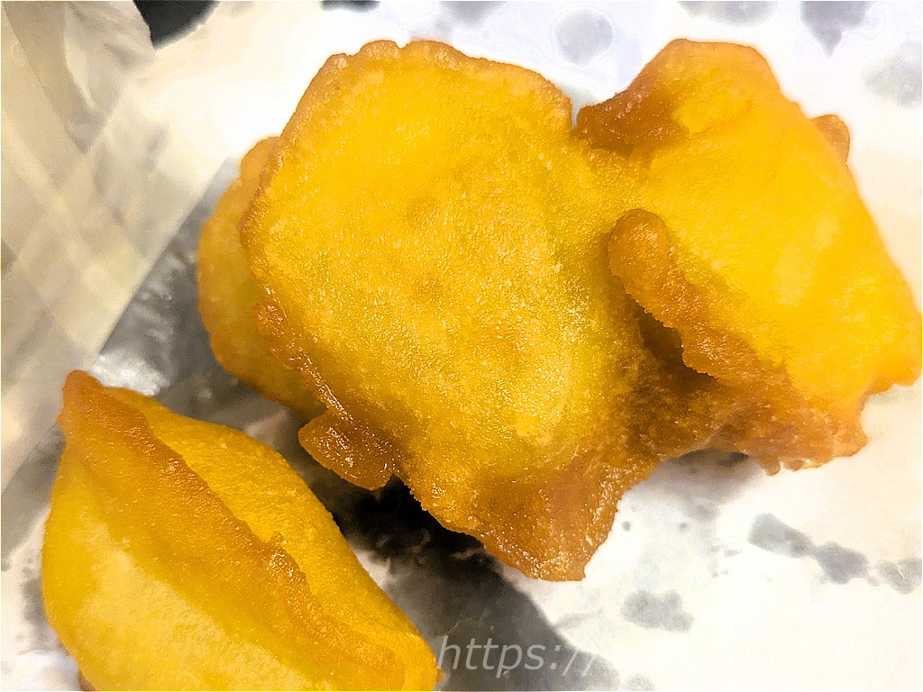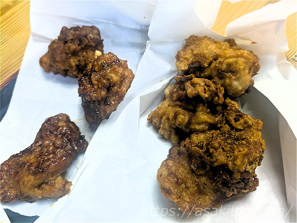 その他にも、日曜市のいも天(1袋400円)はめっちゃ甘い、吉岡精肉店の「ひろめコロッケ(3つ510円)」は食べ応えあり!唐揚げ食べ比べ(6個で800円)もジューシーでした。
