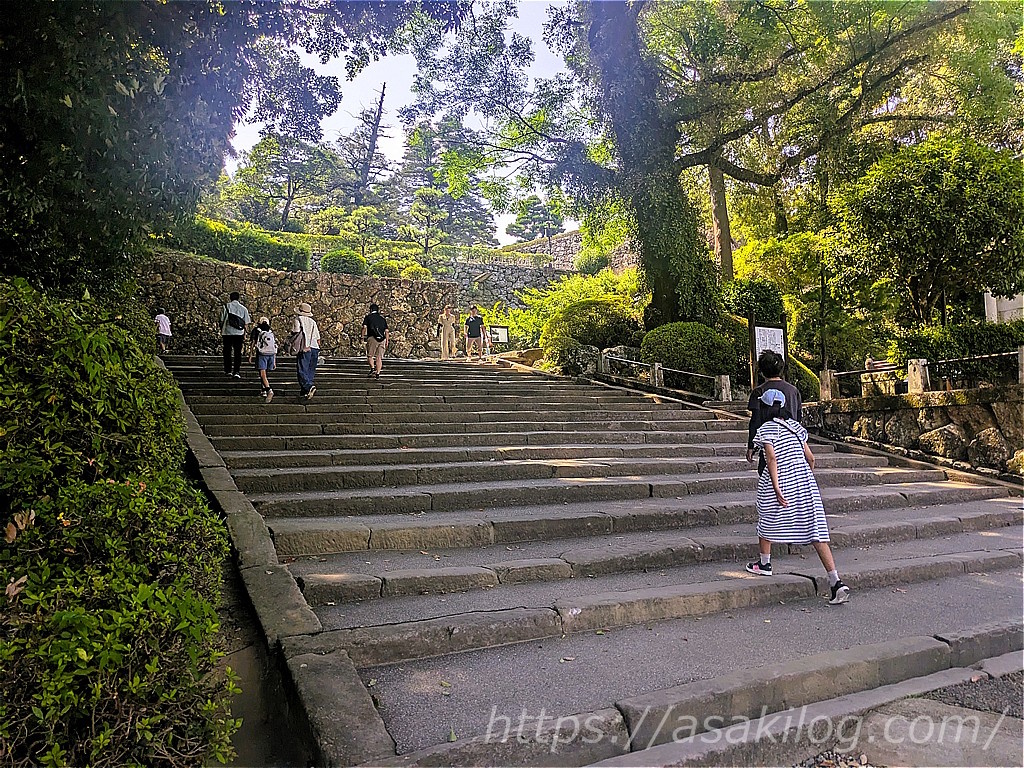 めちゃくちゃ暑い中、階段を上って本丸・天守閣に向かいました。