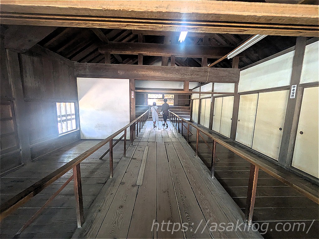 詰門は、高知城の本丸と二の丸をつなぐ櫓門で、藩政時代には「橋廊下」と呼ばれていたそう。このひんやりとした廊下を進むと、本丸の入口です。