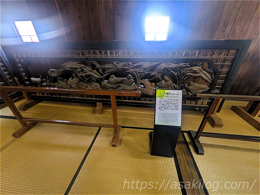 まずは、三ノ丸欄間と二ノ丸欄間。とても美しいデザインが印象的。
