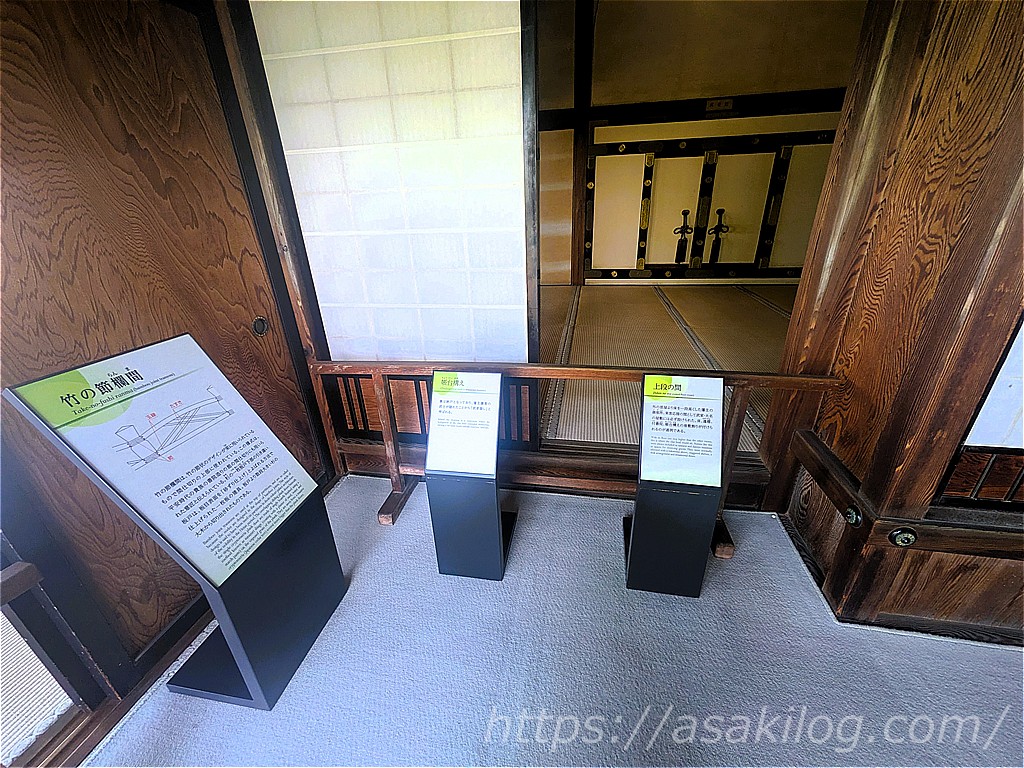本丸御殿ではいろいろと公開。書院造の様式の各部屋や、物見窓、雪隠ノ間(トイレ、中は見れません)などなど。