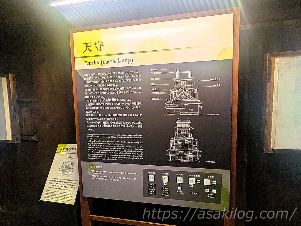 天守の外観は4重ですが、内部は3層6階建て。1~4階では高知城築城の歴史等を展示、最上階6階からは360度のパノラマビューで高知市街を一望できる造りになっています。
