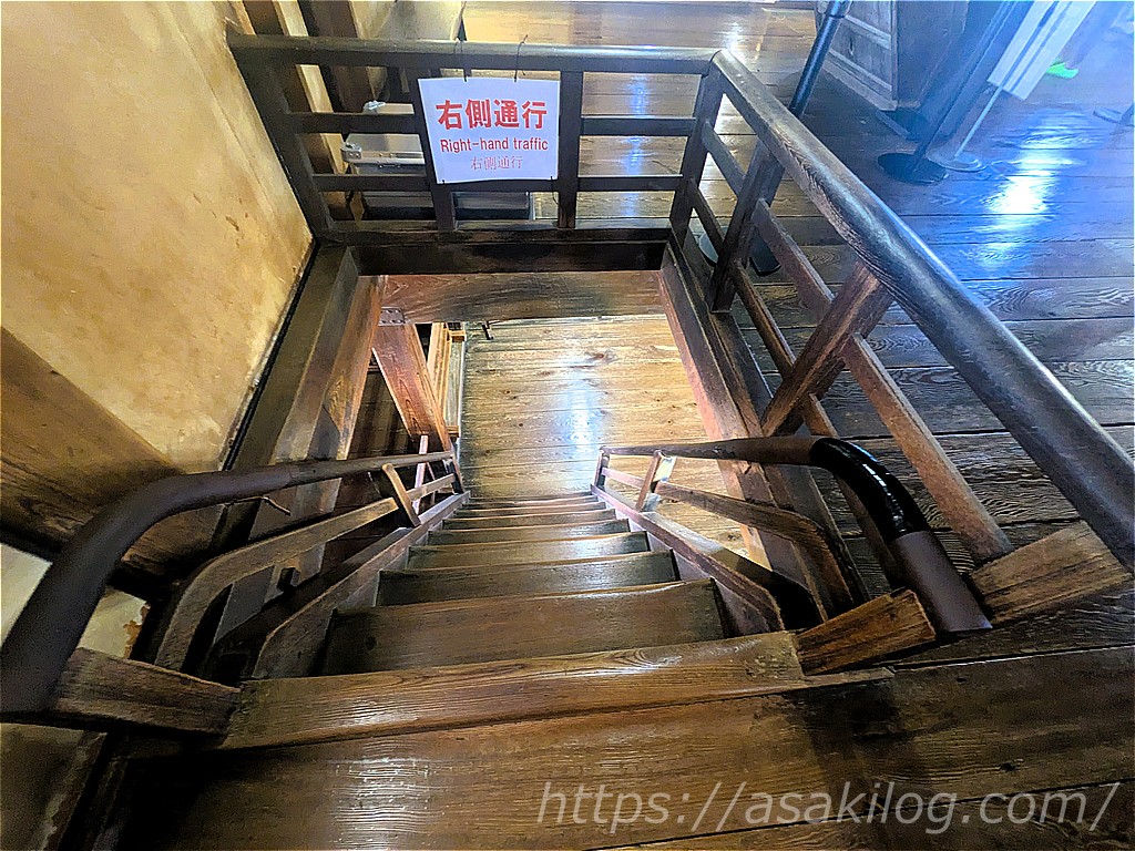 以前訪れた彦根城の天守と比べて、階段が意外と急じゃなかったのが良かったです。