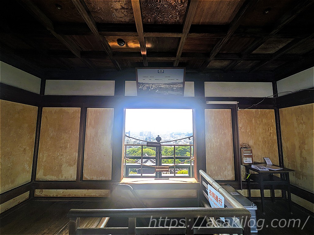 こちらが天守の最上階6階。窓の奥からは360度のパノラマビューで高知市街を一望できます!