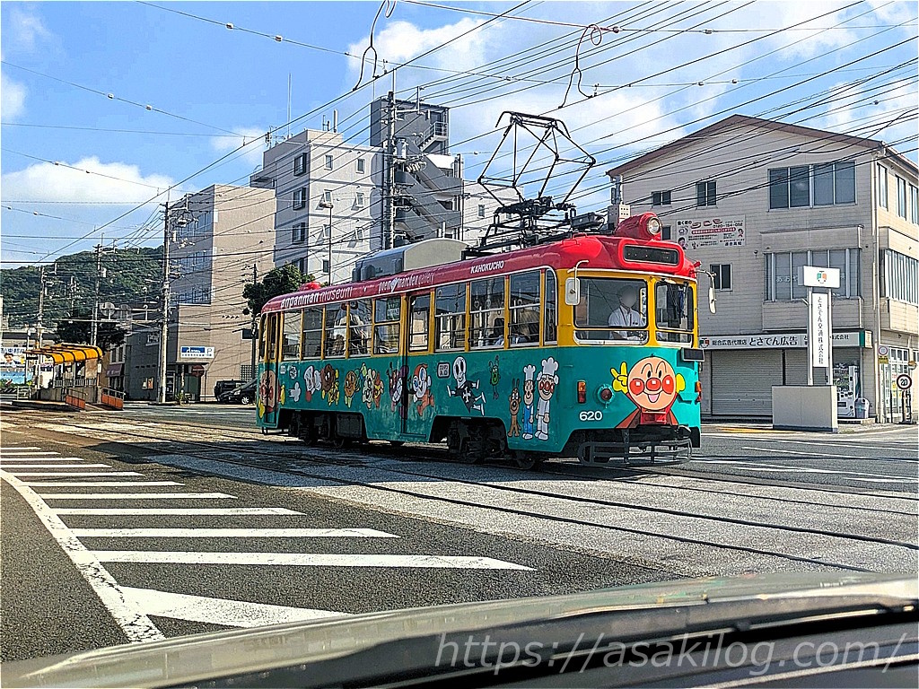 ひろめ市場に向かう時も見かけましたが、とさでん交通の路面電車って、いろんな車体があるんですね。「アンパンマンミュージアムPR電車」や「高知だいすきポケモン ヌオー電車」を見かけた時は、テンションがあがりました!