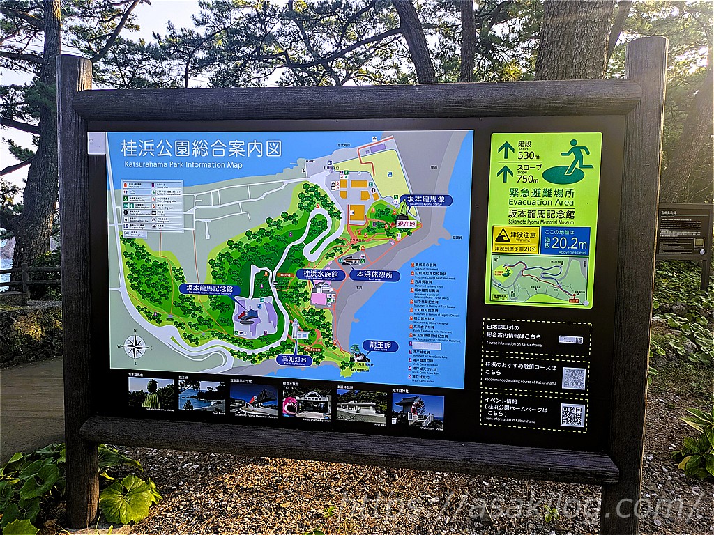 桂浜公園には「坂本龍馬記念館」や「高知灯台」、「桂浜水族館」もあるそう。今回は時間的に立ち寄ることが出来ず残念。
