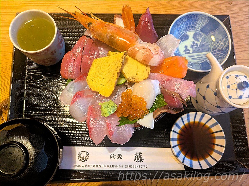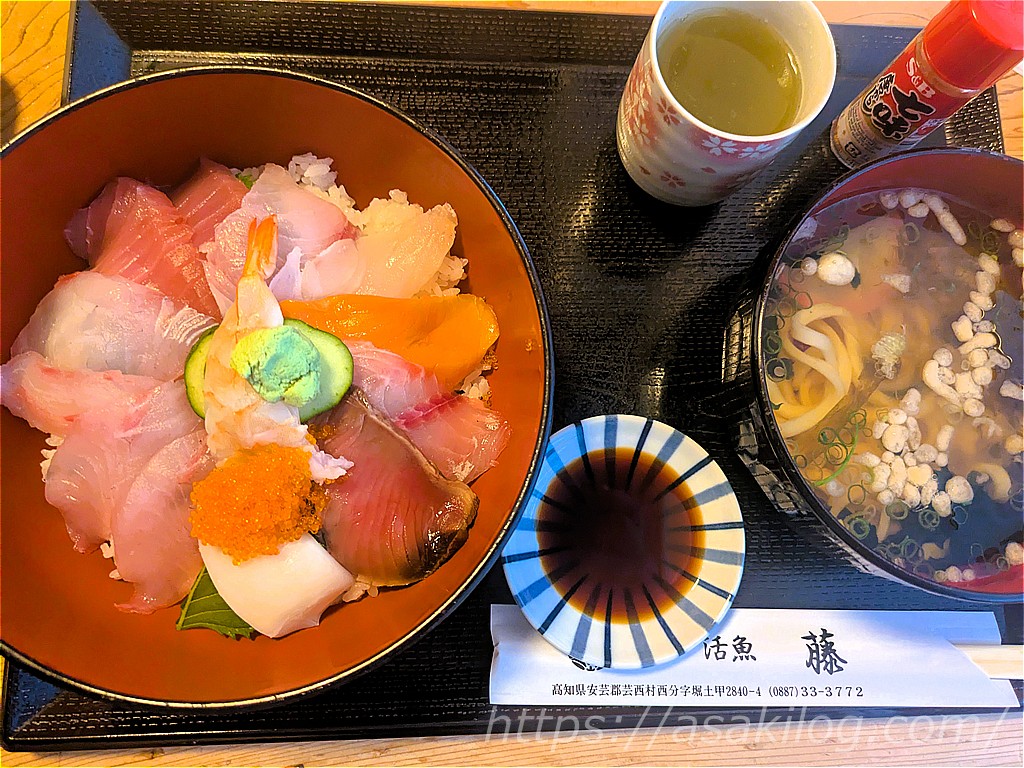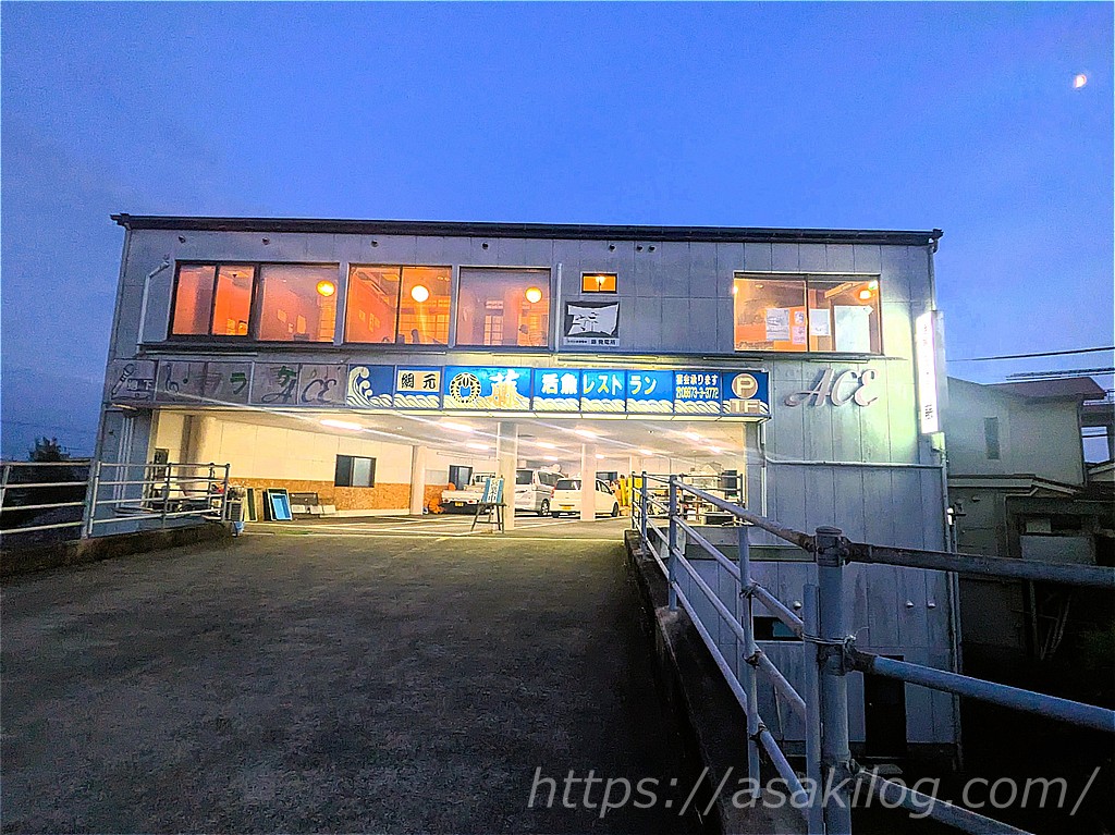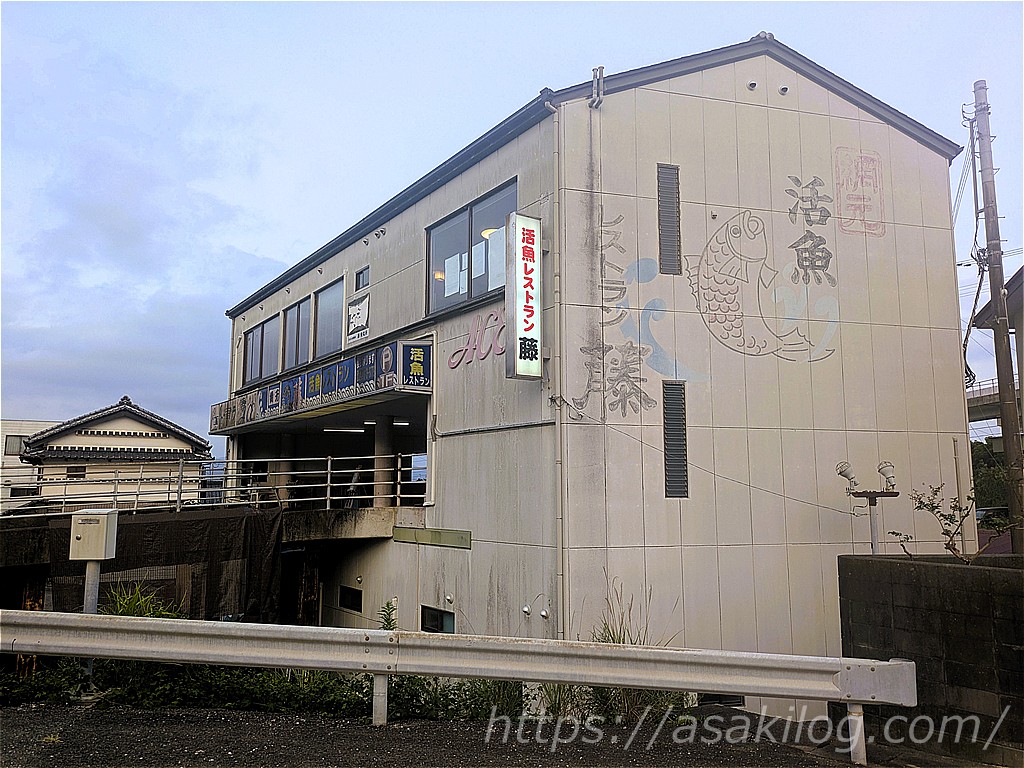 桂浜から今夜の宿方面に移動。できれば宿の近くで夕食を食べたくて見つけたのが、こちらの「活魚レストラン藤」です。18時半頃到着しました。