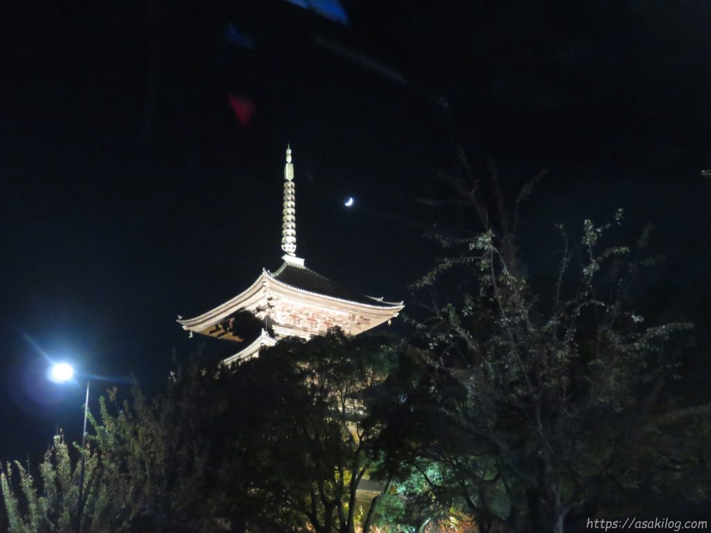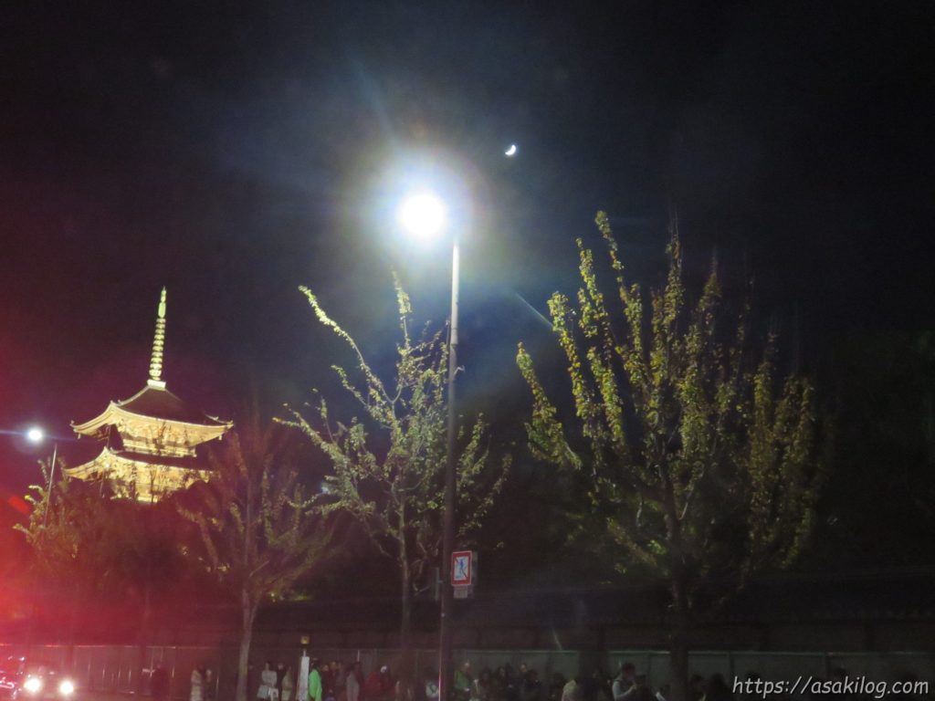 東寺と月。車の中から撮影したのに、なんだか幻想的な写真が撮れました。