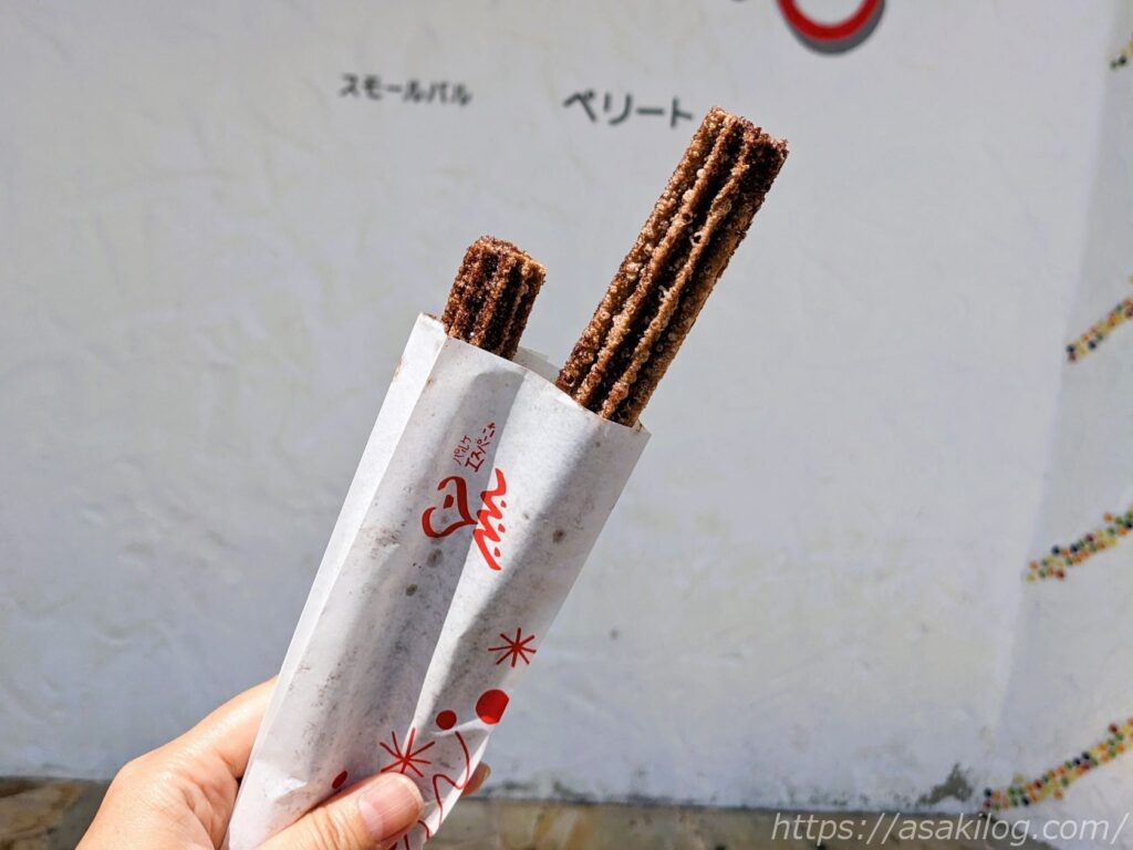 フィエスタ広場のスモールバル「ペリート」で購入したチョコ味のチュロス(460円)は、サクサクした食感で甘すぎず美味しかったです。