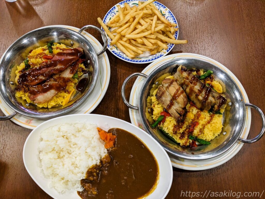 そしてカルメン通りにあるレストラン「エル パティオ」では、「スペアリブ パエリャ レモンペッパー風味」「イベリコ豚ベーコンのパエリャ」「ビーフカレー」「フライドポテト」の4つをオーダー(合計4,890円)。私が食べた「スペアリブ パエリャ レモンペッパー風味」はお肉が柔らかくて美味しかった~。メニューにお子様プレートは一応あったけど量が少なめなので、もう少しキッズ向けメニューを増やしてほしいところ。